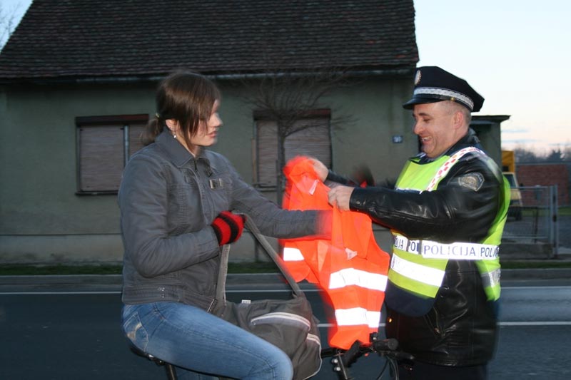"Osim kontrole i sankcioniranja sudionika u prometu koji se nisu pridržavali prometnih propisa, policijski službenici podijelili su i reflektirajuće prsluke neispravno označenim biciklistima, a sve kako bi se oni osvijestili koliki utjecaj na sigurno sudjelovanje u prometu ima pravovremena uočljivost.