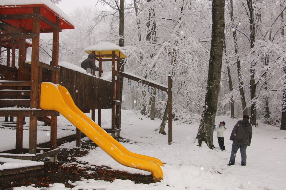 Snijeg što je napadao je vlažan pa tako idealan za izradu gruda snijega i grudanje ili izradu snjegovića i drugih skulptura od snijega. Prvi snjegović već je napravljen na livadi ispred planinarskog doma, a obitelji s djecom sanjkale su se i grudale na padinama i dječjem igralištu oko doma.