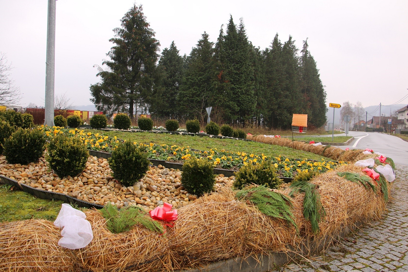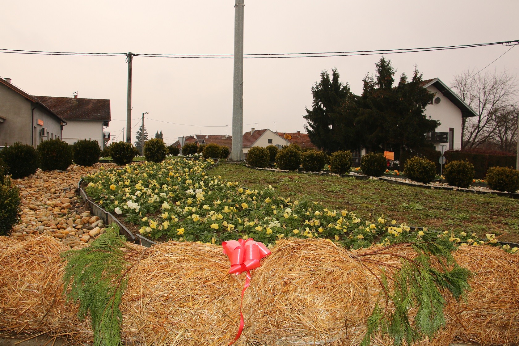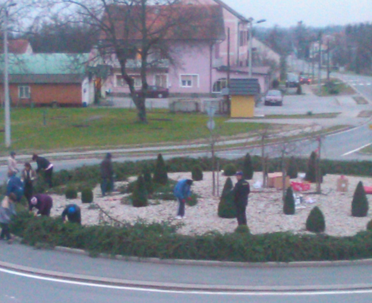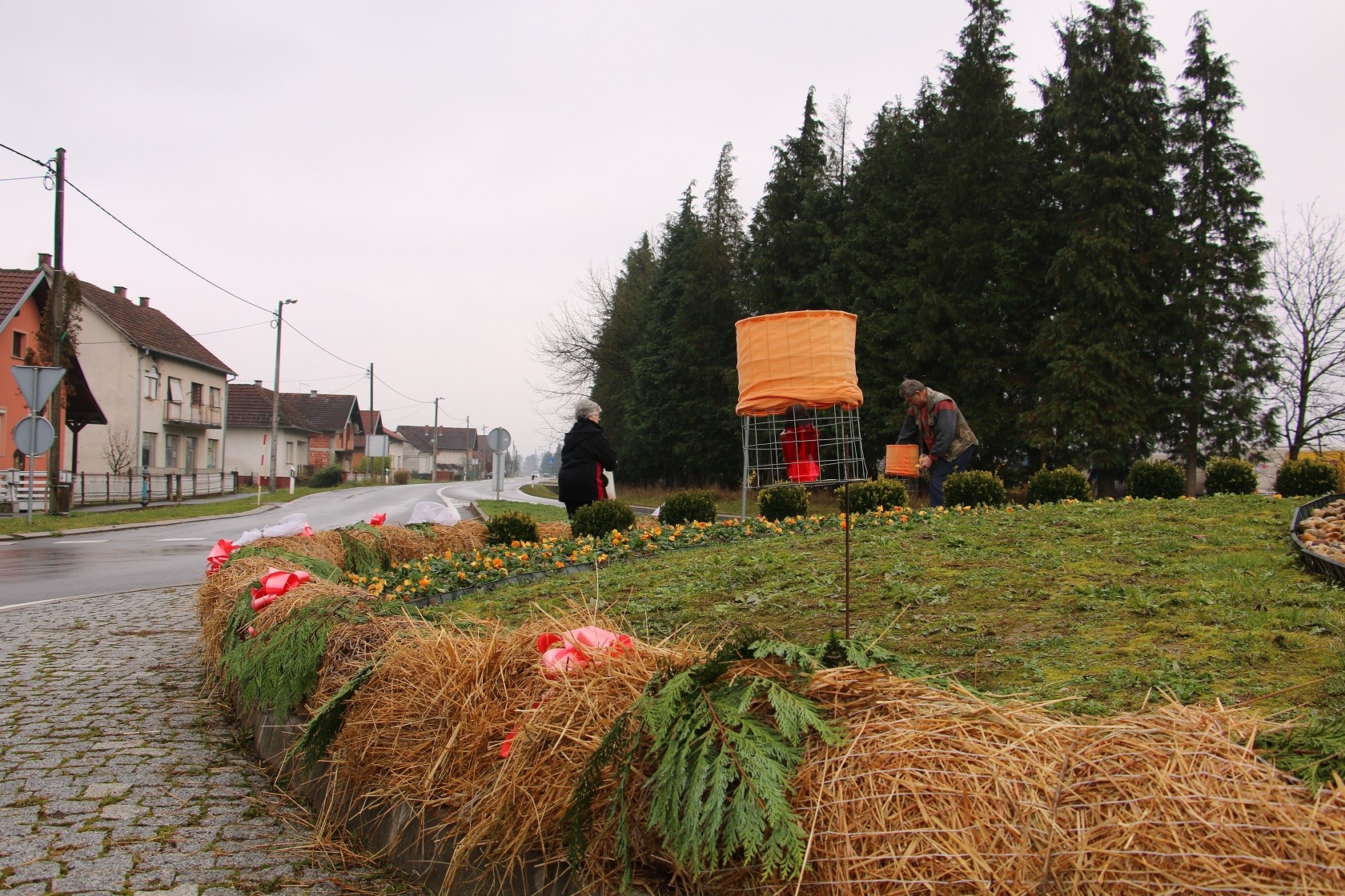 Udruga žena Badljevine u kružnom toku u središtu svog mjesta izradila je uobičajeni vijenac od smrekovih, borovih i jelovih grana.