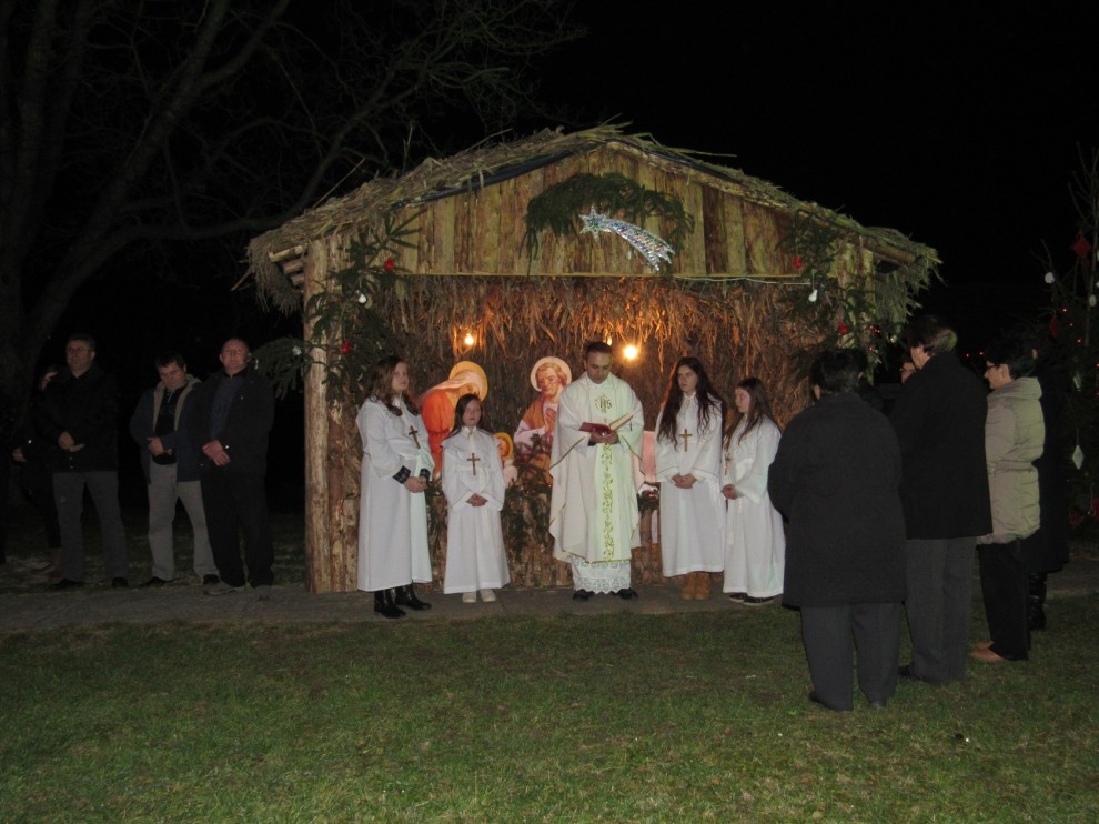 Pred okupljenim vjernicima župnik Župe Donja Obrijež vlč. Mario Rašić blagoslovio je 24. prosinca božićne jaslice u dvorištu crkve sv. Marije Magdalene u Donjoj Obriježi nakon čega su zajedno misom polnoćkom u crkvi na tradicionalan način proslavili rođenje Isusa Krista.