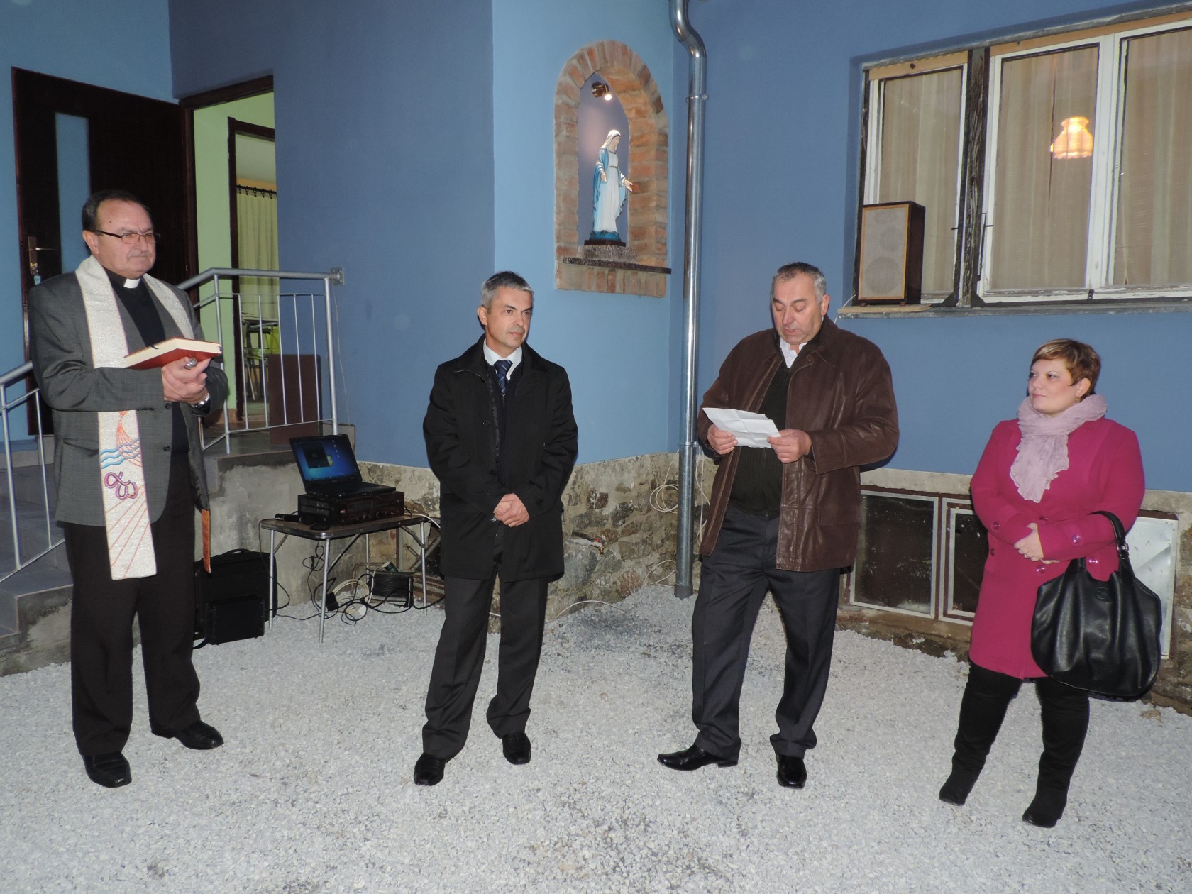 Na svečanom otvorenju pakrački župnik vlč. Matija Juraković blagoslovio je prostorije kuće i kip Gospe, Blažene Djevice Marije, postavljen u niši s dvorišne strane kuće.