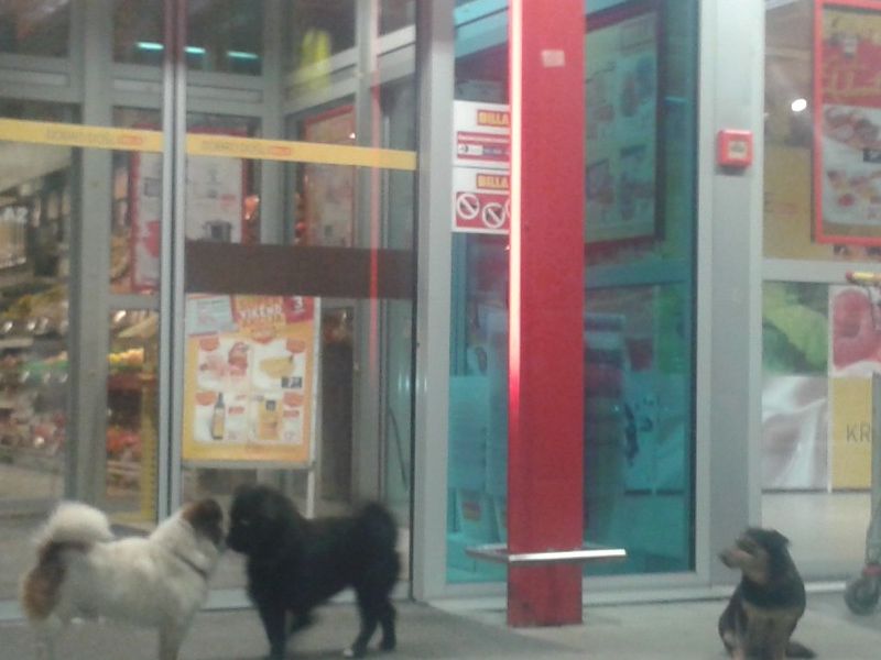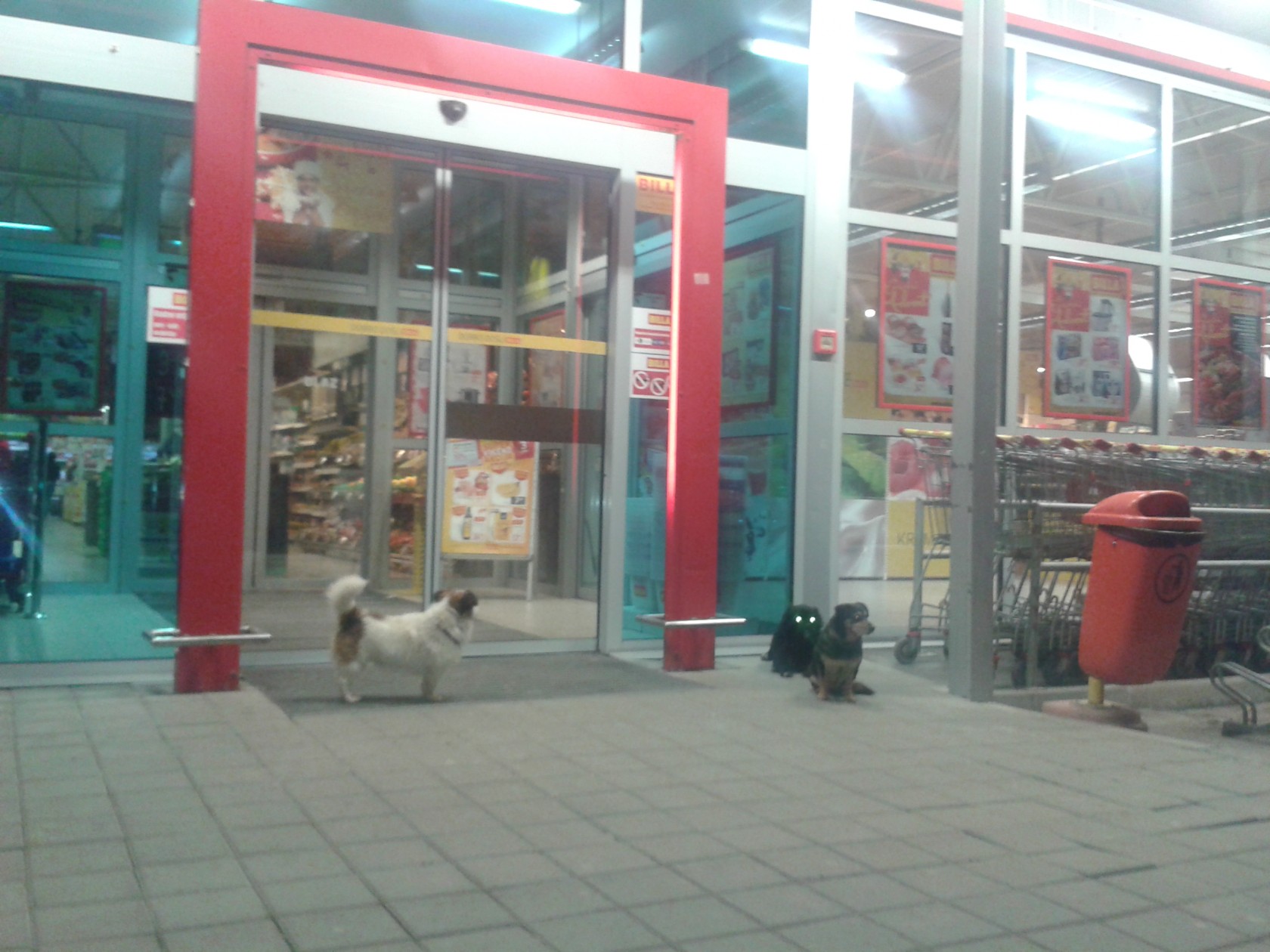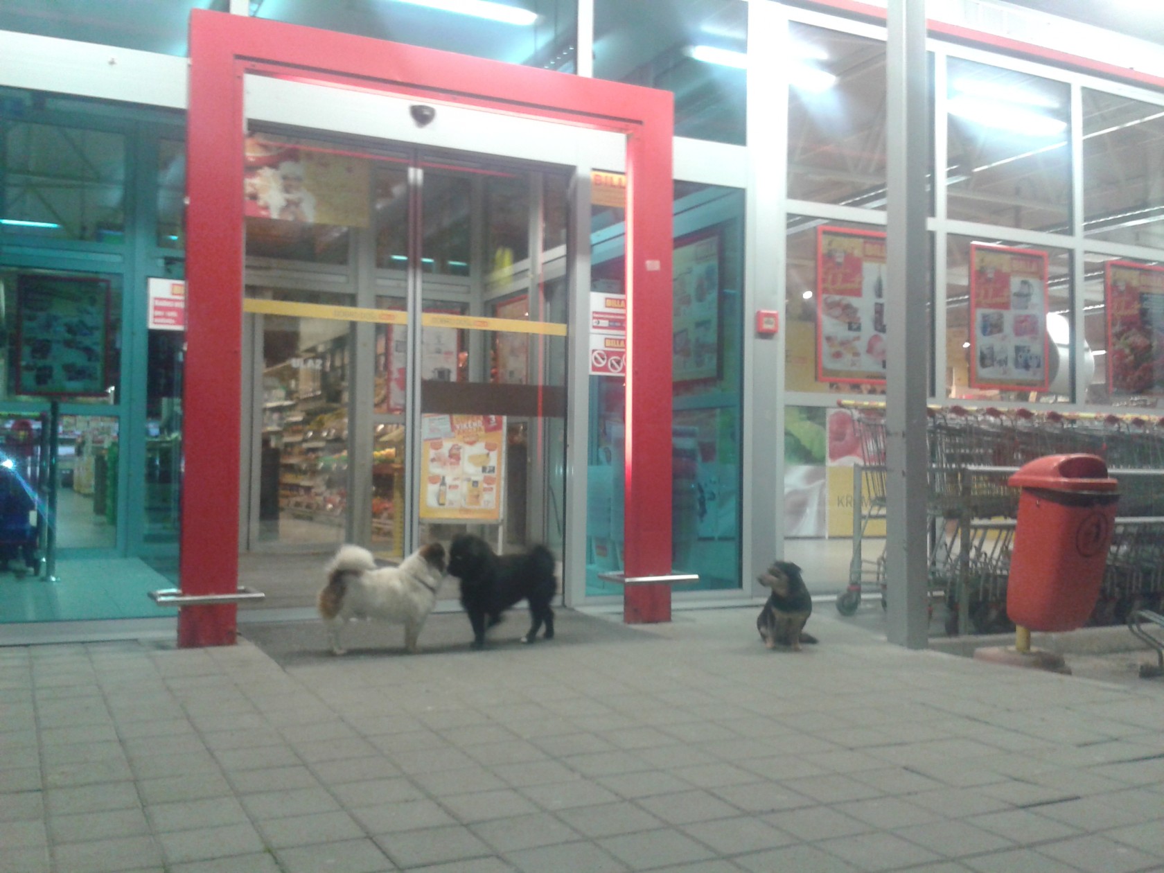 Pred trgovinu došli su pas i njegova vlasnica. Nakon što je vlasnica ušla u unutra da obavi kupnju potrebnih namirnica njen pas ostao je ispred ulaznih vrata. Nekoliko trenutaka kasnije došla su još dva crna psa do ulaza u poslovnicu koji su cijelo vrijeme bili zaigrani i očekivali su da im se prvi priključi u njihovoj igri.