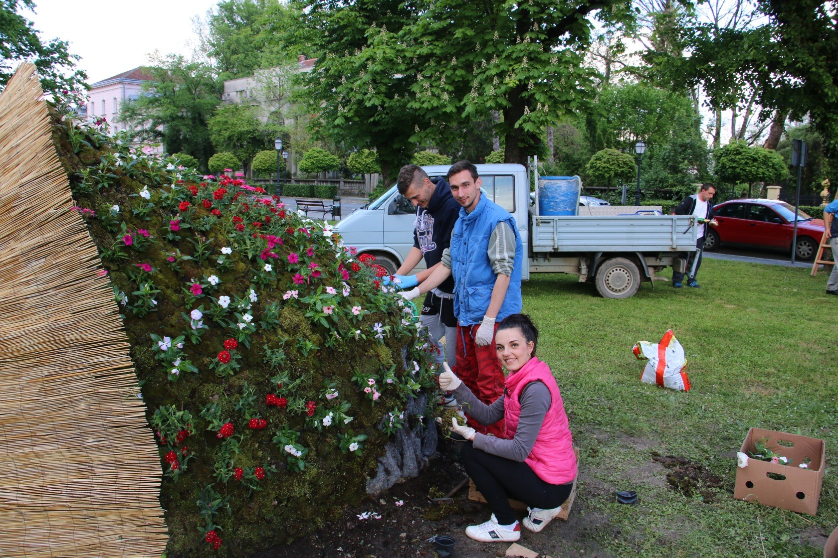 Sadnja novih ljetnica i popravak buketa cvijeća izrađenog prvi puta za prošlogodišnju manifestaciju započela je već dan ranije, a danas predvečer nakon što je posađena posljednja ljetnica oko kojih su pričvršćeni komadi mahovine kako bi se postigao dodatni estetski učinak buket cvijeća zaliven je vodom. Još je samo preostalo pripremiti par sitnica i buket cvijeća bit će spreman za početak sajma.