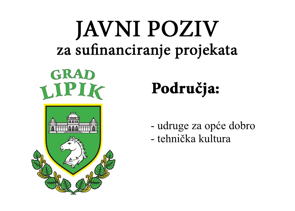 Temeljem članka 48. Zakona o lokalnoj i područnoj (regionalnoj) samoupravi i čl. 14. Pravilnika o financiranju javnih potreba Grada Lipika, Grad Lipik je raspisao Javne pozive za sufinanciranje projekata udruga za opće dobro te projekata iz područja tehničke kulture za 2016. godinu.