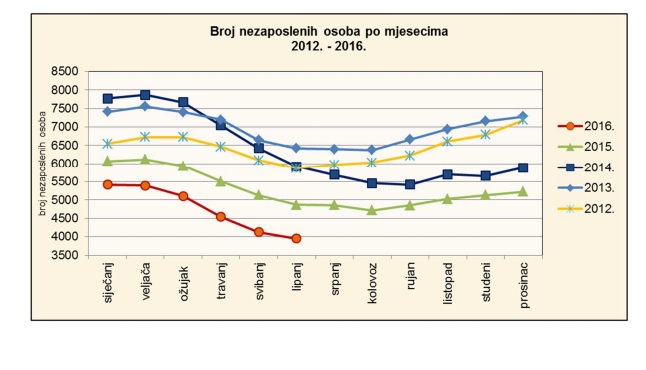 Krajem lipnja 2016. u evidenciji Hrvatskog zavoda za zapošljavanje Područnog ureda Požega registrirano je 3.950 nezaposlenih osoba. U odnosu na prethodni mjesec, nezaposlenih je manje za 4,3% ili 178 osoba, a na međugodišnjoj razini (lipanj 2016./lipanj 2015.), nezaposlenih je manje za 18,8% ili 915 osoba. Na području Grada Lipika nezaposlenih osoba tijekom lipnja u odnosu na svibanj bilo je manje za 4,4%, dok je na području Grada Pakraca bilo manje za 7,2%.
