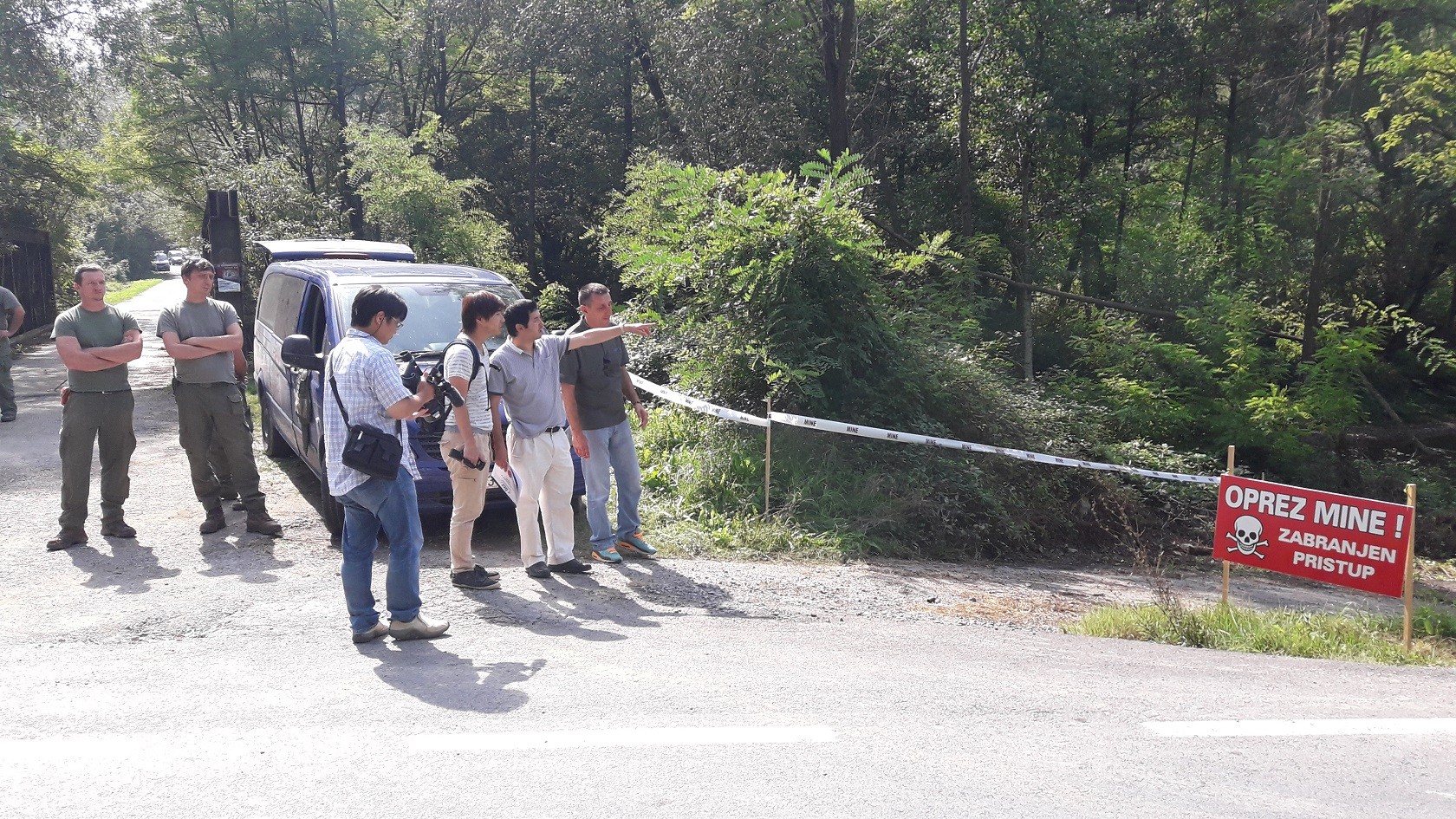 Poslije obilaska Lipika tv-novinari iz Japana otišli su u pratnji predstavnika HCR-a do Kusonja kod Pakraca gdje je u tijeku razminiravanje minski sumnjivog i miniranog terena. Na lokaciji kod Brusničkog mosta u blizini terena gdje pirotehničari obavljaju svoj posao ravnatelj HCR-a Jakopec, načelnik odjela za kvalitetu i akreditaciju Davor Lavra i voditelj radilišta Romano Mihalić pobliže su ih upoznali s načinom rada i tehnikama koje se koriste pri razminiranju.