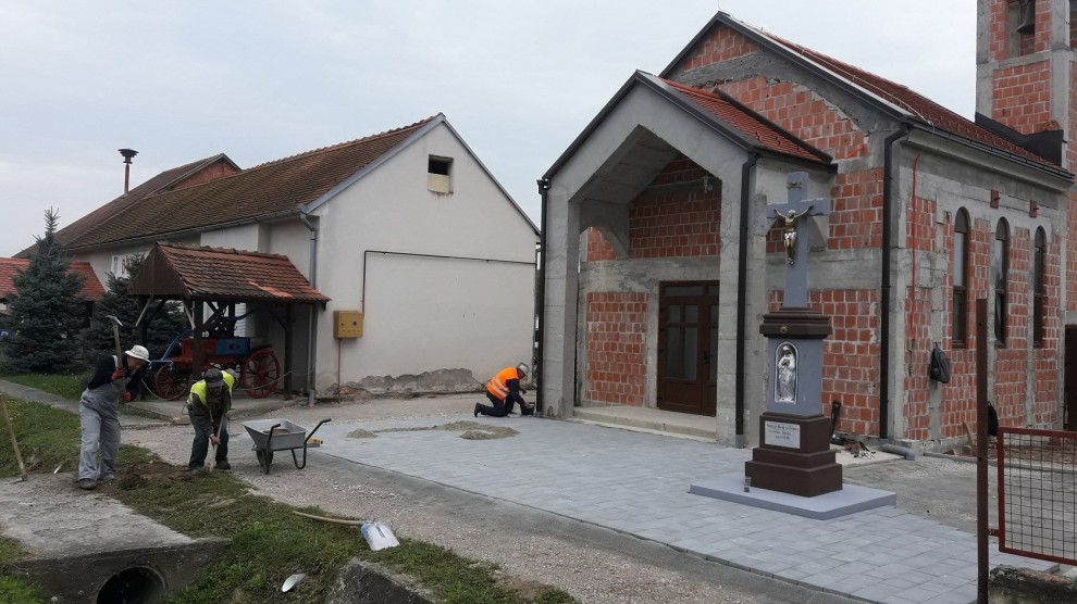 Radovi na popločenju prilaza i izradi odvodnje oborinskih voda ispred novoizgrađene kapelice Presvetog srca Isusovog u Dobrovcu 10. listopada su u završnoj fazi, a započeli su prije tjedan dana.