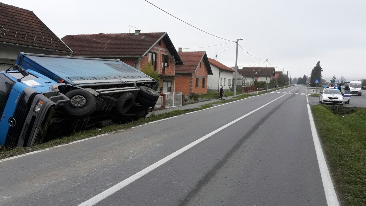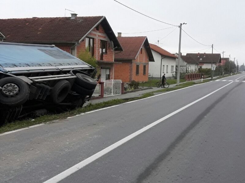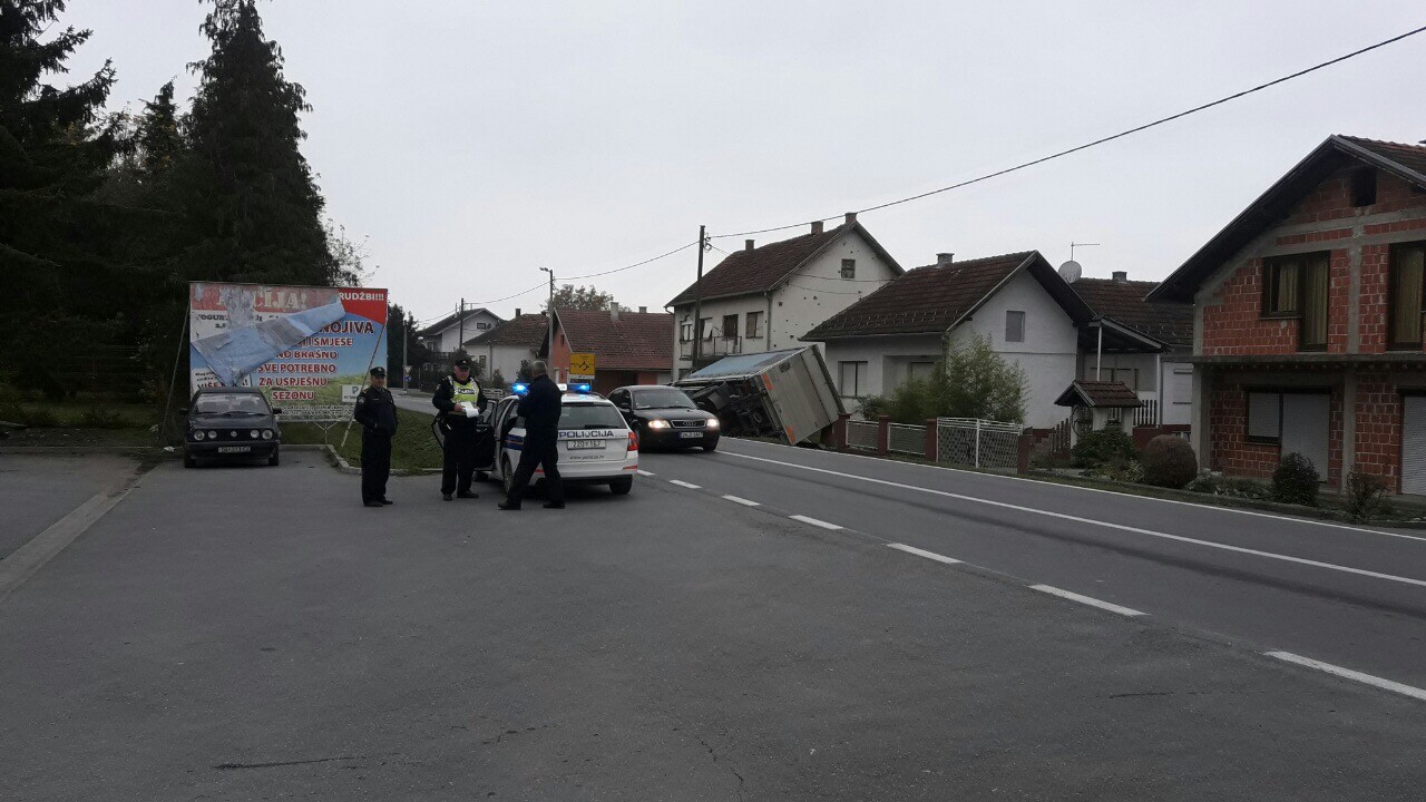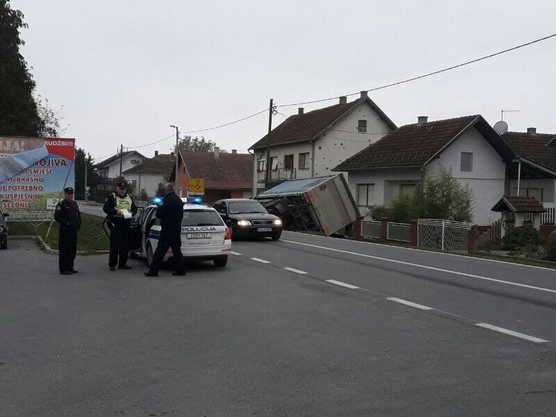 Policijski očevid je još uvijek u tijeku dok se promet odvija usporeno i nesmetano na mjestu izlijetanja kamiona, ali je potrebno voziti usporeno i oprezno.