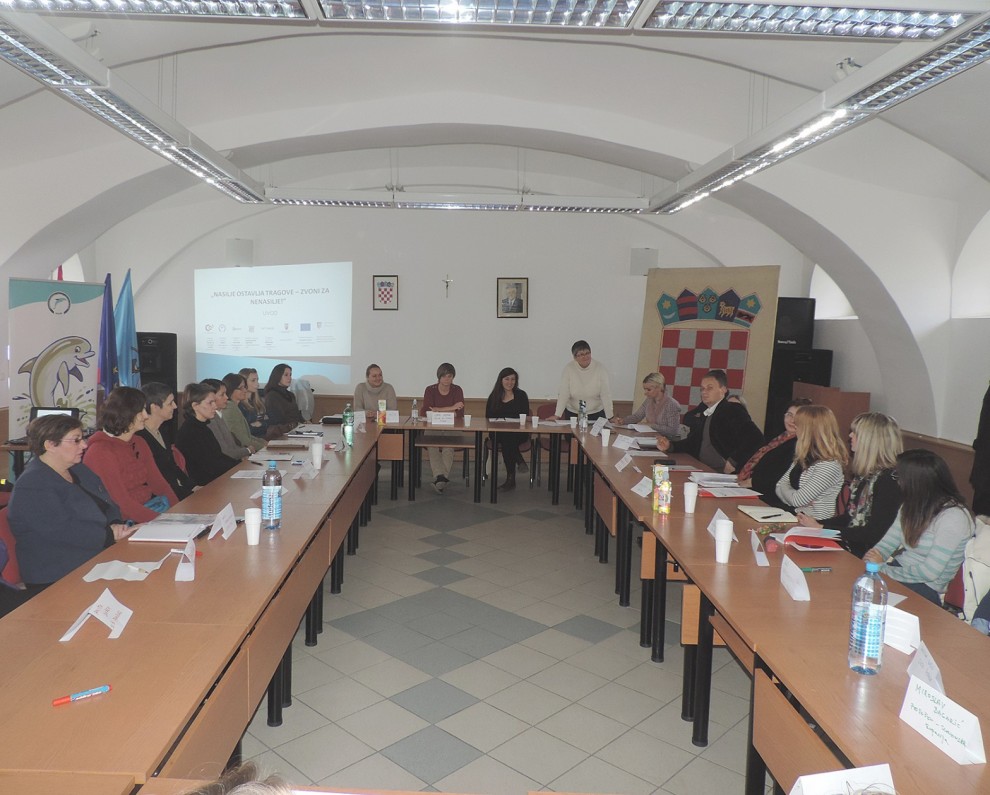 Emina Bužinkić i Lana Jurman, predstavnice Centra za mirovne studije, te Mirjana Bilopavlović, predstavnica centra "Delfin" Pakrac, predstavile su projekt "Nasilje ostavlja tragove - zvoni za nenasilje" na sastanku s oko trideset predstavnika lokalnih, obrazovnih i socijalnih ustanova te policijskih uprava s pakračko-lipičkog područja.