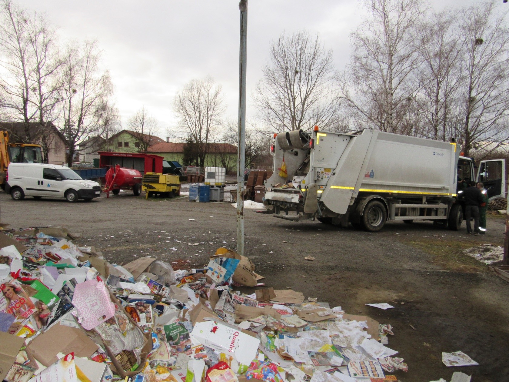 Zatekli smo se u dvorištu pakračkog „Komunalca“ na Gavrinici u trenutku kada su se vratili djelatnici s kamionom nakon što su završili prikupljanje papira i kartona iz smeđih spremnika od kućanstava iz dijela Pakraca i s područja Kusonja. Taj dio zadnji je došao na red nakon što su ispraznili smeđe spremnike 26. i 27. siječnja na području Grada Lipika te od 1. veljače do ovog jutra s područja Grada Pakraca. Uslijedilo je utovarivanje dosad prikupljenog papira i starog kartona u kamion, koje je privremeno dok se ne završi pražnjenje svih smeđih spremnika odloženo u dvorištu „Komunalca“, te odvoz na vaganje i isporuka otkupljivaču u Daruvaru.