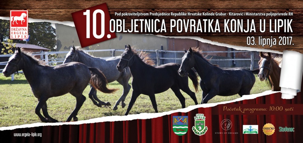Državna ergela Lipik u cilju obilježavanja obljetnice povratka konja u Lipik u subotu 3. lipnja organizira manifestaciju pod nazivom „10. obljetnica povratka konja u ergelu Lipik“