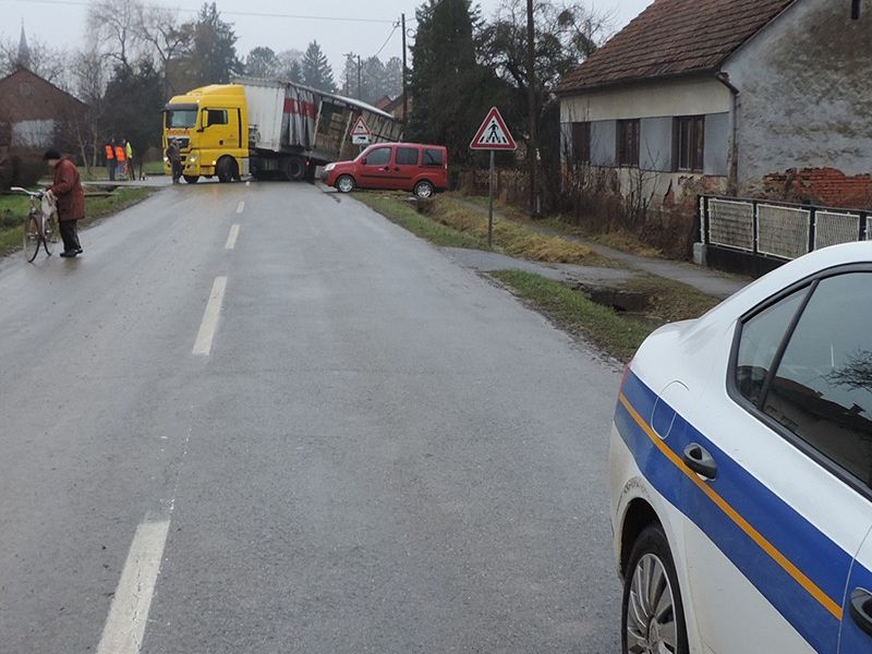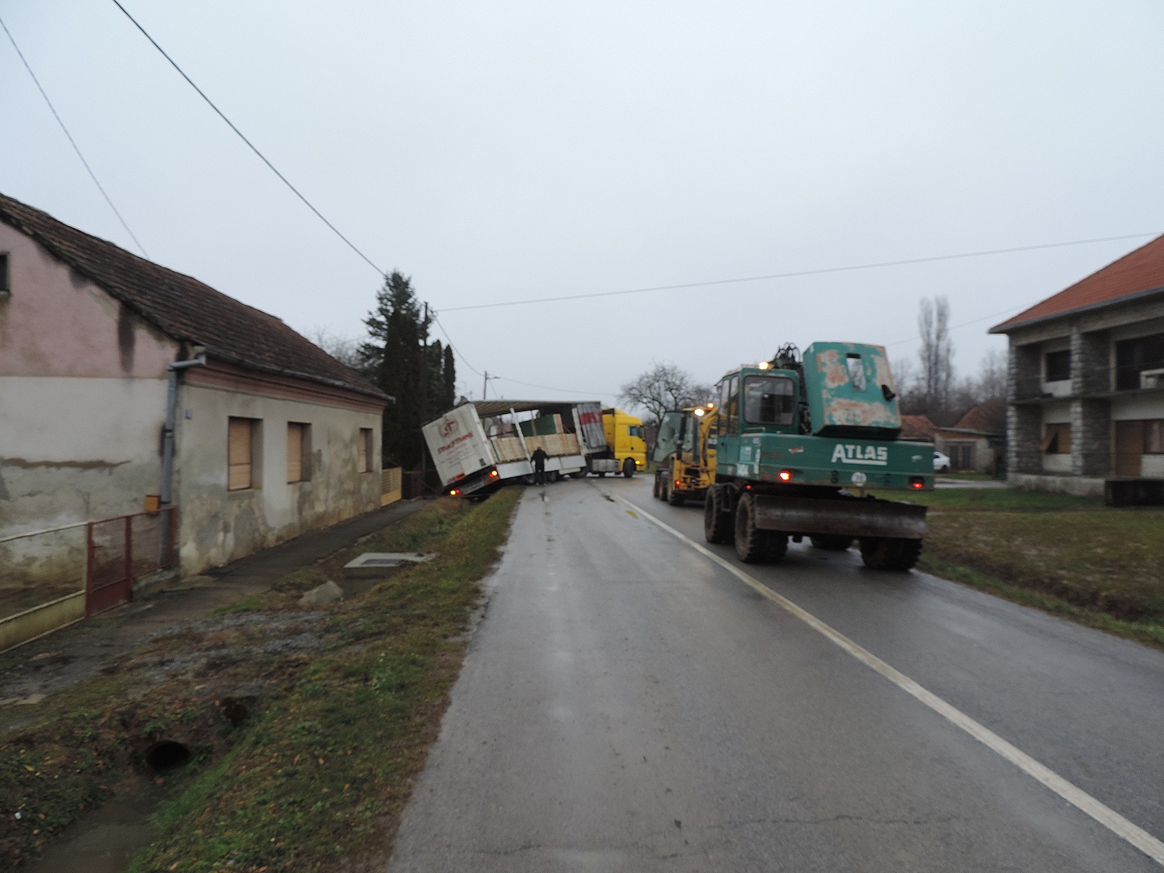 U ranim jutarnjim satima 19. siječnja, oko 5 sati, kamion se zanio u jarak čime je prepriječio prometnicu u Gaju. Trenutno je prekidu promet na cesti Lipik-Dobrovac-Gaj-Poljana, a policijski službenici preusmjeravaju promet kod kružnog toka u Dobrovcu i kod semafora u Poljani. Prometnica Lipik-Poljana zbog izvlačenja kamiona bit će zatvorena za promet svima, osim lokalnom stanovništvu, do iza 12 sati, doznali smo od policijskog službenika na terenu.