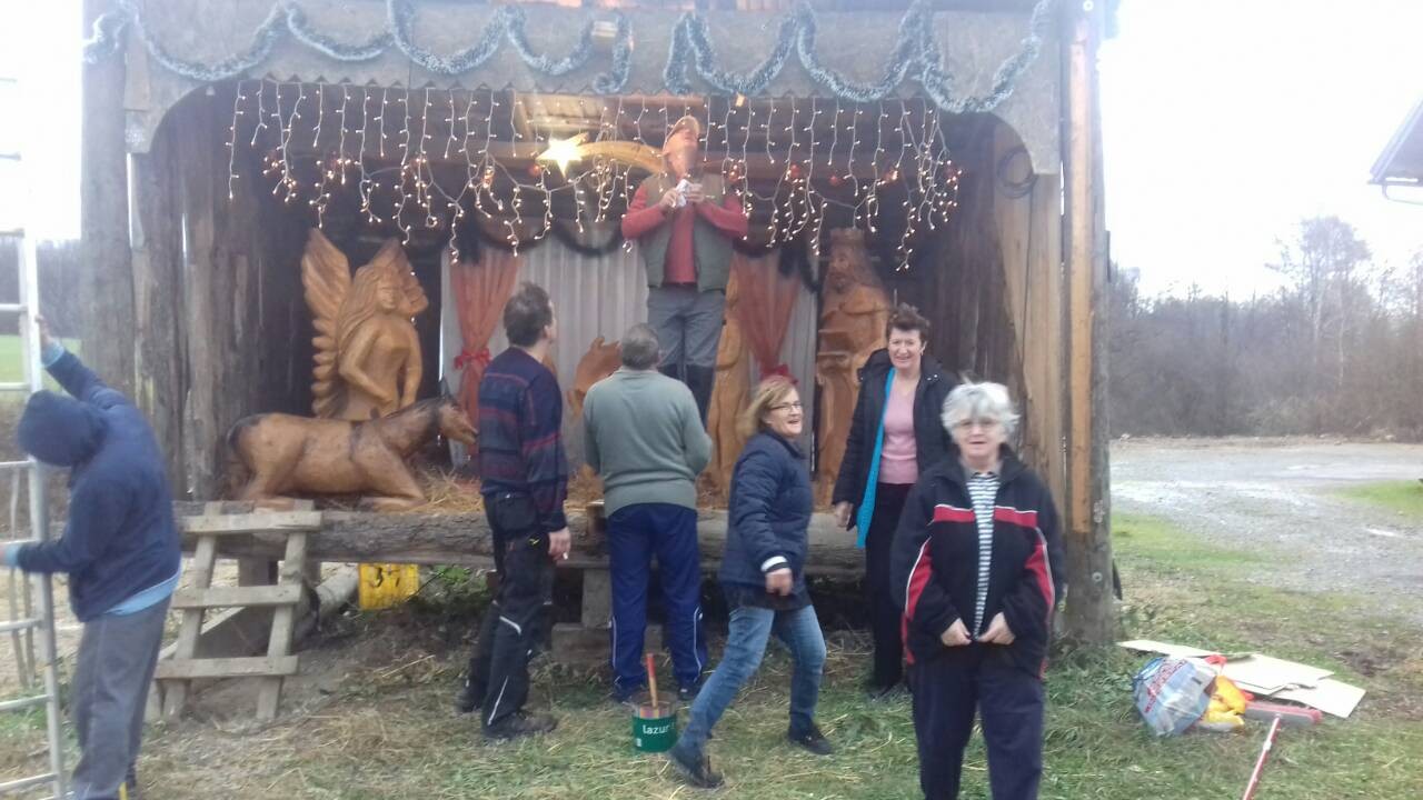 Jaslice su tijekom jučerašnjeg dana postavili članovi Udruge za očuvanje narodnih običaja LIDO, a ove godine one su u nešto drugačijem izdanju. Drvene figure za jaslice izradio je kipar iz Sirača, a figure su financirane novcem sponzora Udruge.