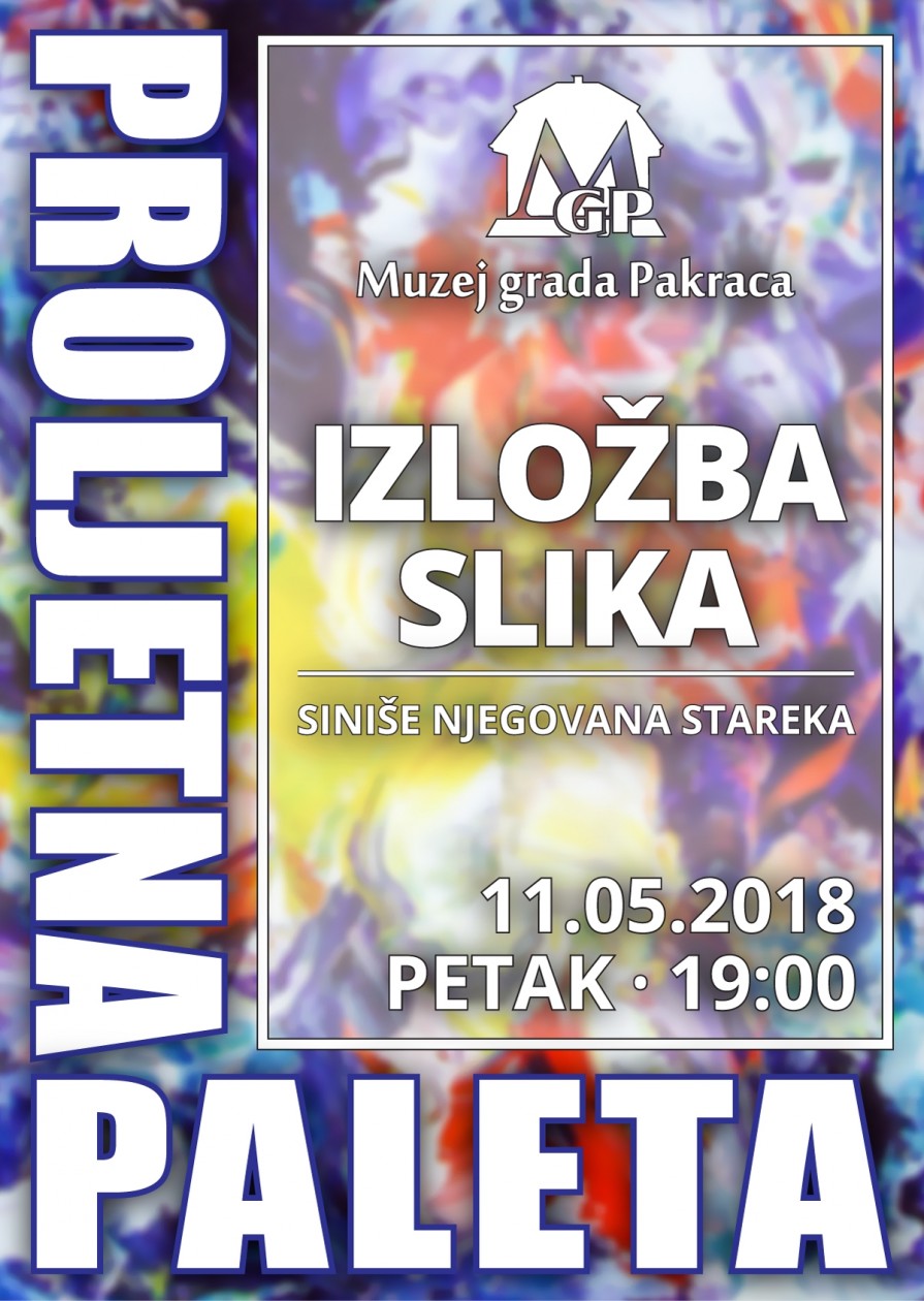U petak, 11. svibnja 2018. godine, u 19 sati, u Muzeju grada Pakraca održat će se otvorenje izložbe slika Siniše Njegovana Stareka pod nazivom „Proljetna paleta“.