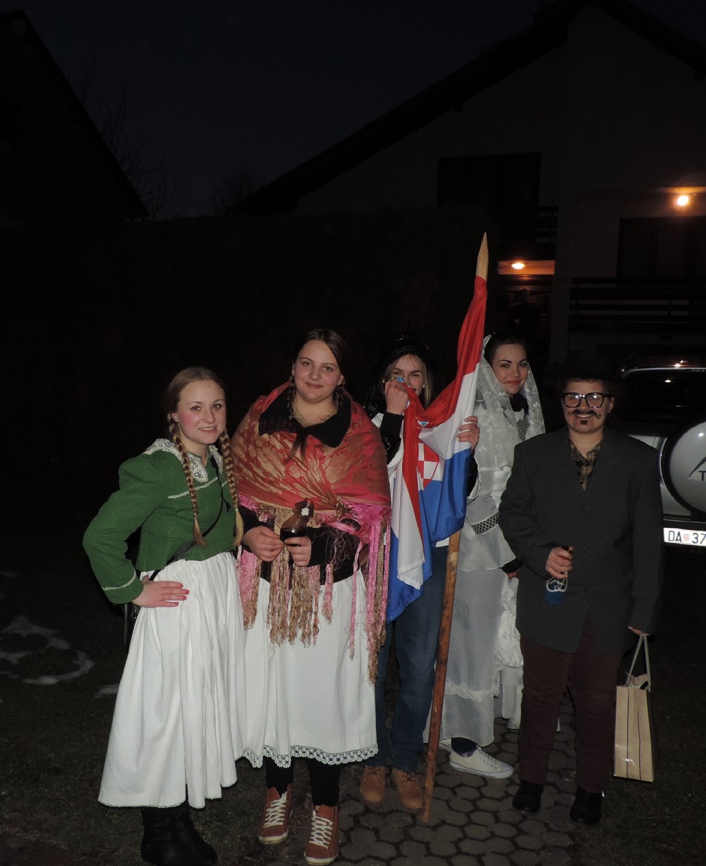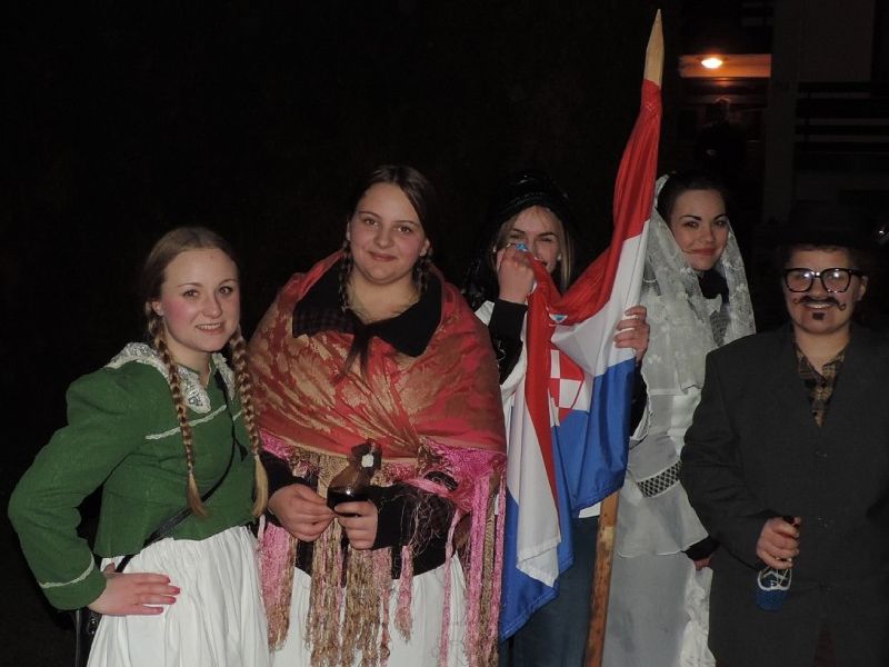 Večeras u Pakracu kućanstva u Ulici Matije Gupca obilazili su upravo svatovi, i to pravi slavonski, domaćine kuća koji su im otvorili vrata čak su sami nudili, a uz uobičajene napjeve koje recitiraju maškare tražili su malo i zauzvrat.