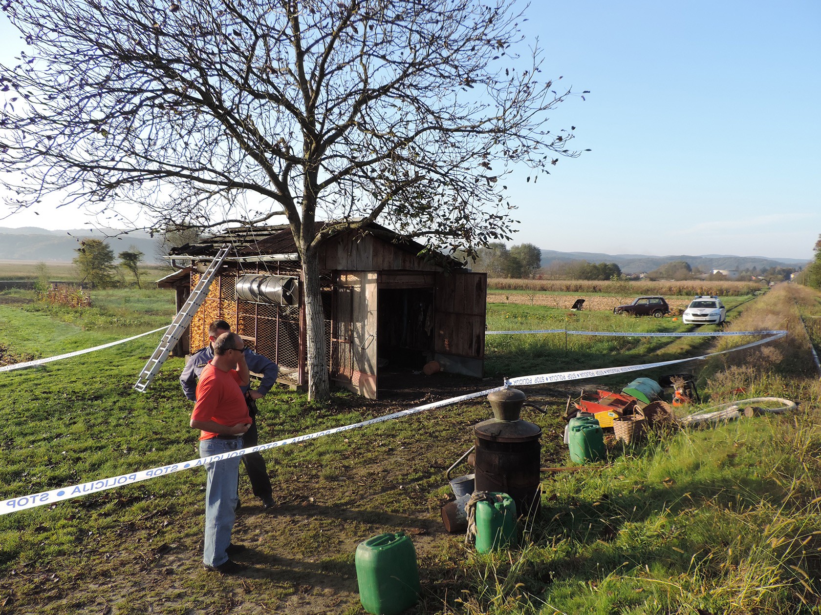 Inspektori Policijske postaje Pakrac započeli su očevid ujutro 14. listopada 2014. godine. Uz opožareni objekt pronađen je spremnik municije za automatsku pušku, nalik na spremnik puške AK-47 popularnog naziva kalašnjikov, i još neeksplodiranih pirotehničkih sredstava, "petardi".