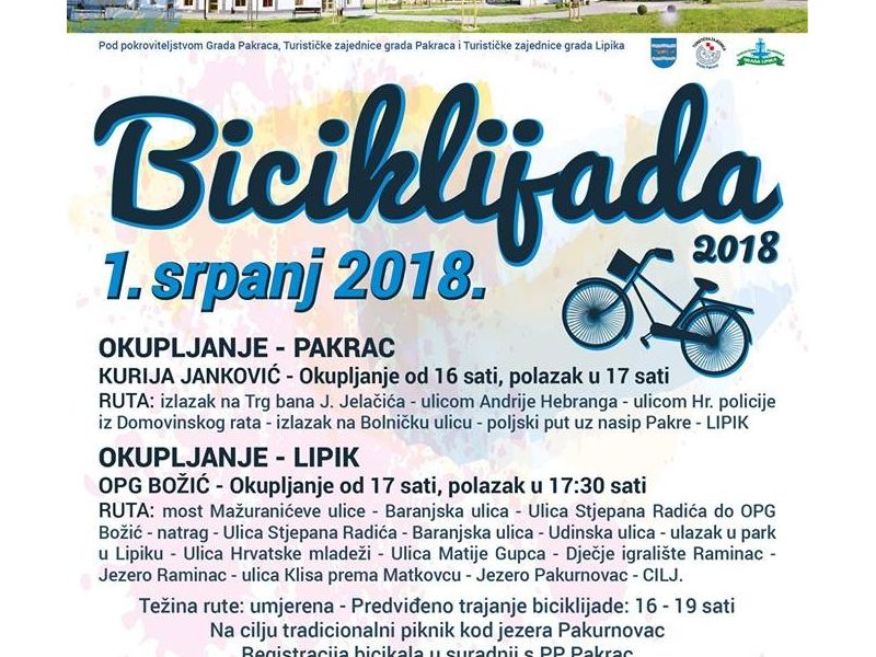 U organizaciji Turističkih zajednica Lipika i Pakraca u nedjelju 1. srpnja održat će se tradicionalna Biciklijada 2018.