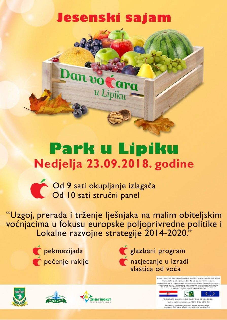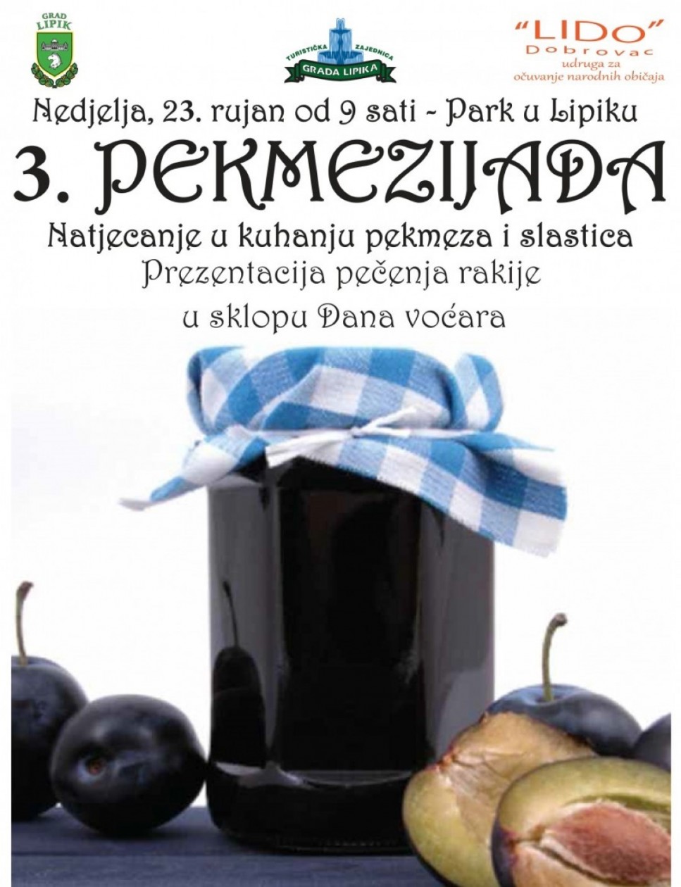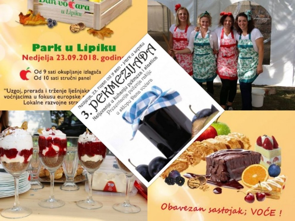 Dan voćara, Jesenski sajam, Pekmezijada i Natjecanje za najbolje slastice se održavaju u isto vrijeme na istom mjestu, od 9 sati u parku u Lipiku. Idemo redom.