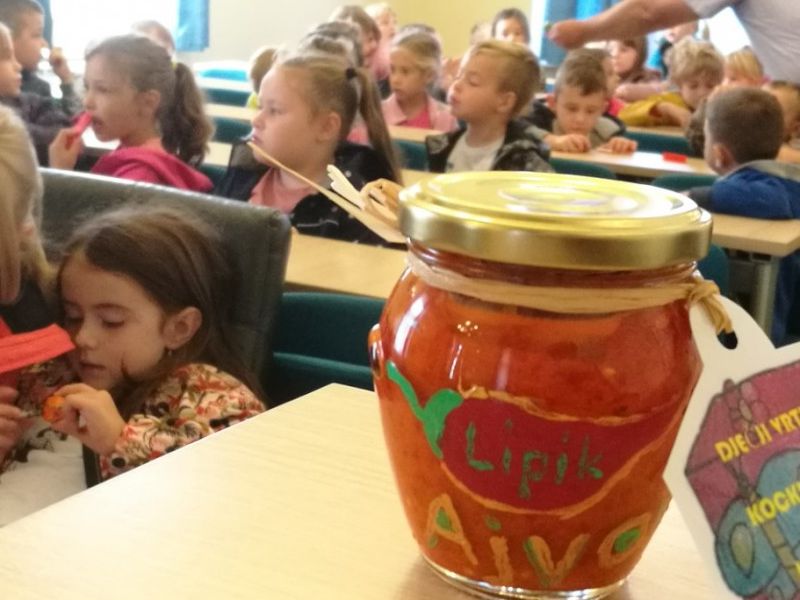 Na poklon su mu donijeli teglicu ajvara pripremljenog na nedavnom Ajvarfestu i dar pjesme o Lipiku koju su mu odrecitirali.