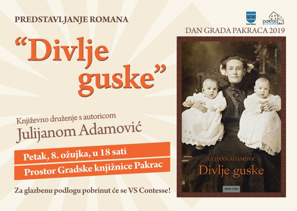 "Bliži nam se Dan grada Pakraca, a to nam je svake godine prilika da vas upoznamo s nekim od aktualnih i kvalitetnih hrvatskih književnika. Ove godine, pomalo slučajno, ali na kraju ne i sasvim beznačajno, datum je 8. ožujak - Međunarodni dan žena, koji ćemo provesti u društvu jedne divne i zanimljive žene - Julijane Adamović.", doznali smo od ravnateljice Gradske knjižnice Pakrac Monike Lucić Fider.