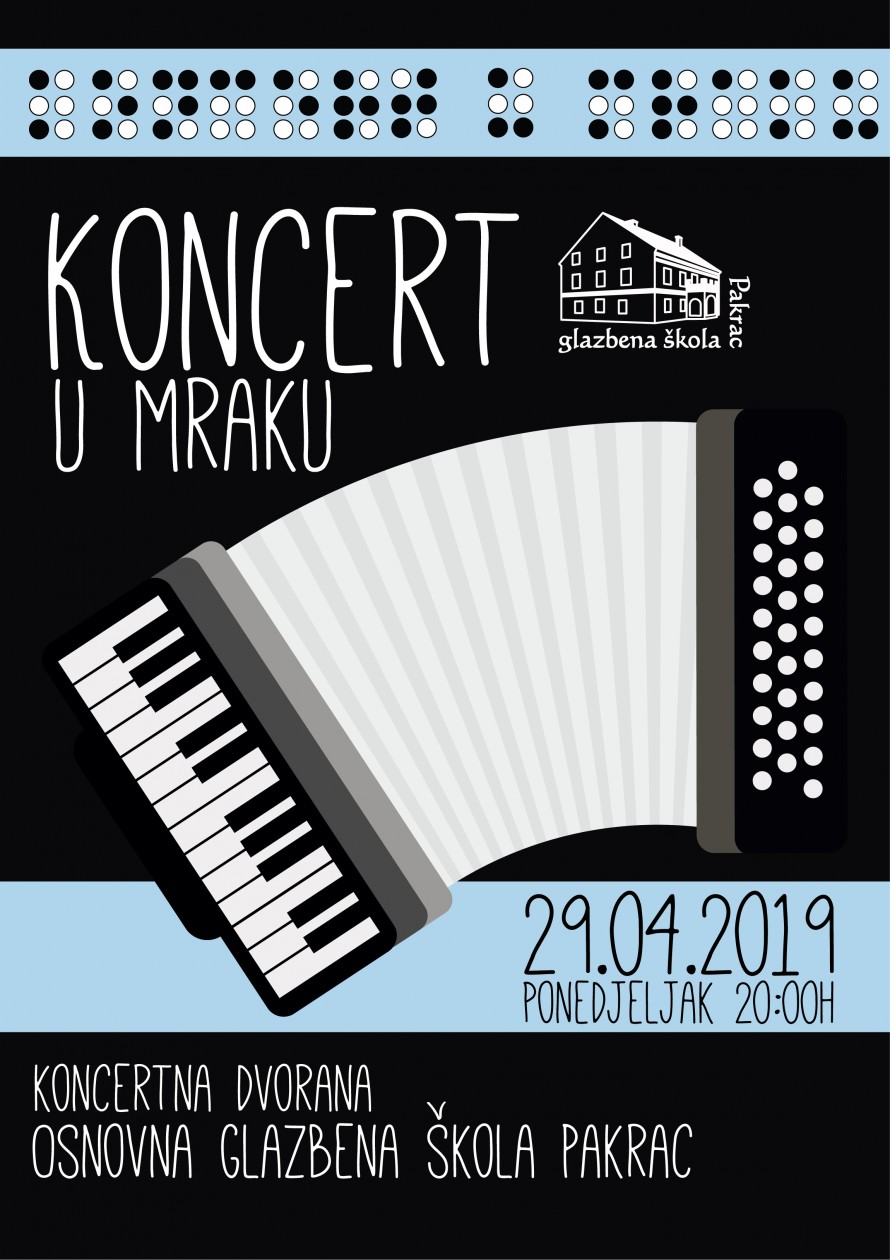 „Naučio nas je Brailleovo pismo, gledati srcem, da budemo bolji ljudi... naučio nas je toliko tog, a sve što se mi njega trudimo naučiti je - svirati... On je Lovro Kozić, naš učenik prvog razreda harmonike po kojoj prebire s takvim žarom da ćete, slušajući ga, teško primjetiti da je Lovro zapravo slijep... Stoga 29. travnja, kada gasi svjećice na torti, u školi gasimo svjetla i sviramo njemu u čast! Pridružite nam se na koncertu u mraku, u ponedjeljak, u 20 sati...“