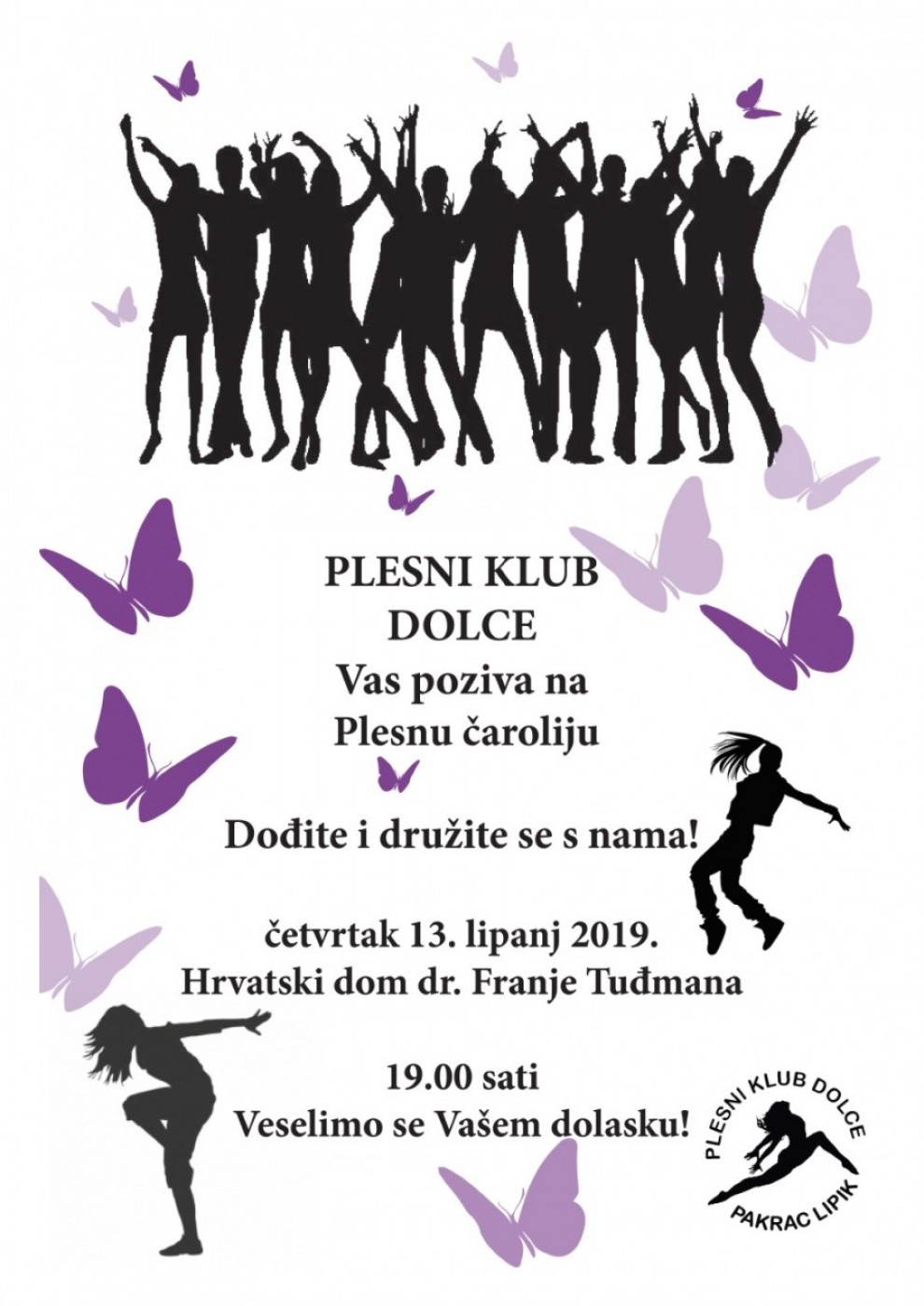 Plesni klub Dolce poziva na završnu priredbu koja će se održati u Hrvatskom domu dr. Franjo Tuđman u Pakracu u četvrtak 13. lipnja 2019. s početkom u 19 sati.
