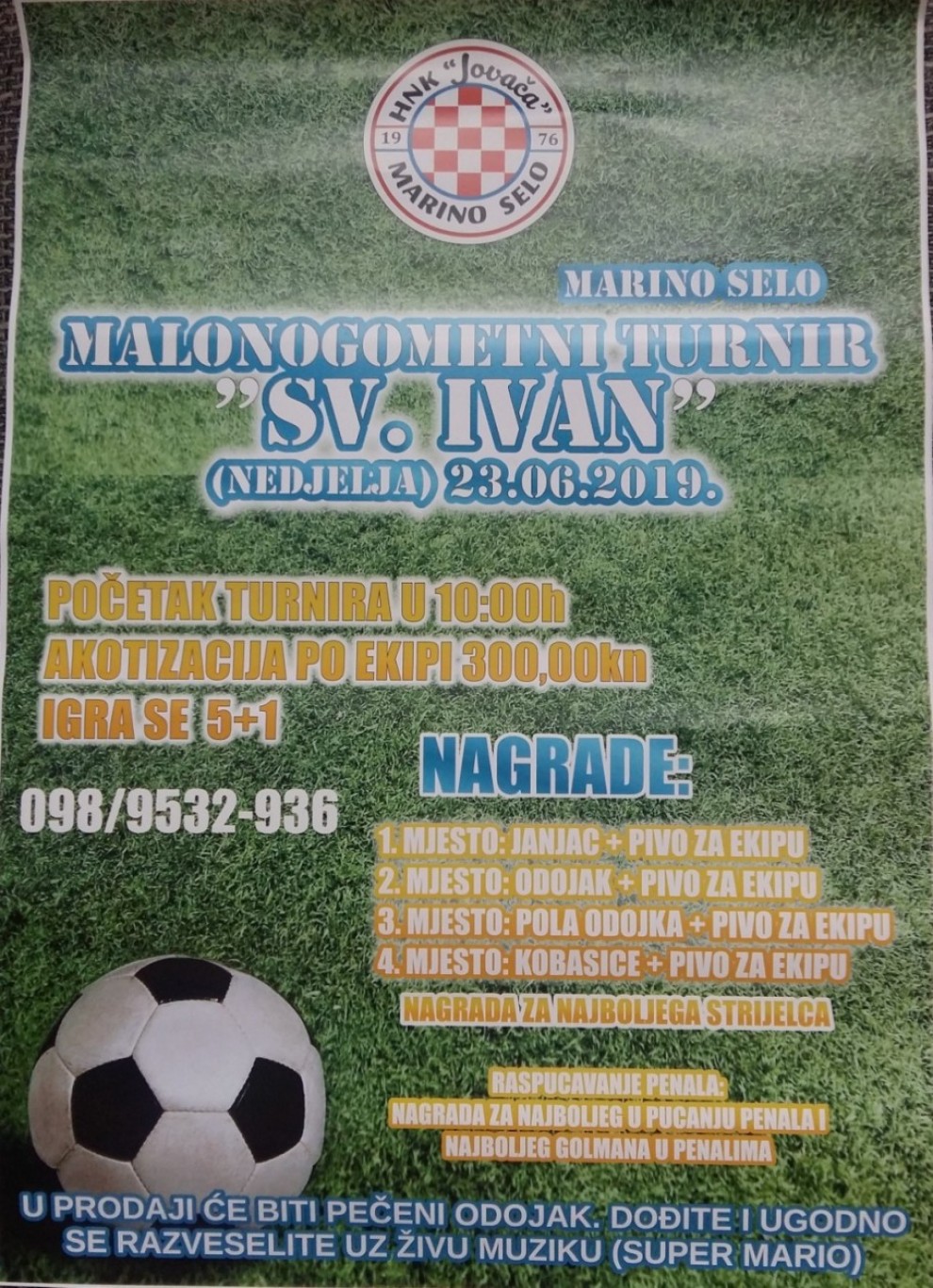 U organizaciji nogometnog kluba „Jovača“ iz Marinog Sela nadolazeću nedjelju, 23. lipnja u Marinom Selu, bit će održan malonogometni turnir „Sv. Ivan“.