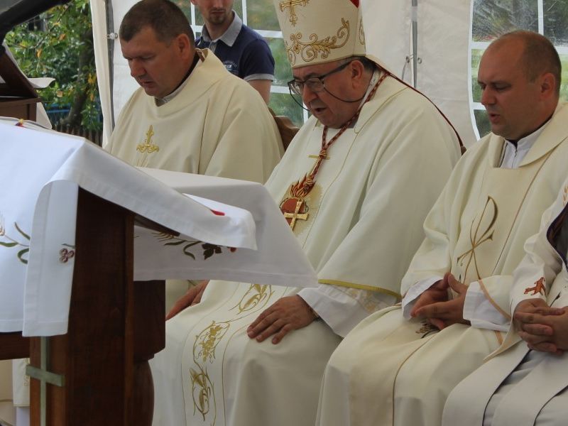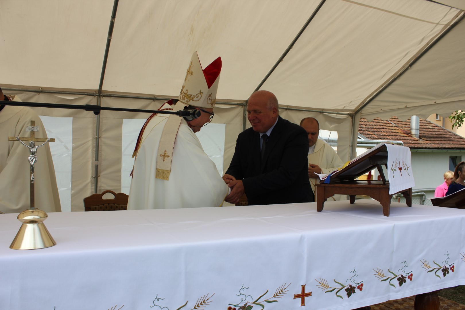 Od srca se zahvalivši za dobrodošlicu svima koji su ga dočekali, kardinal Puljić započeo je svetu misu ispred više od stotinu godina stare crkve Sv. Ivana Krstitelja u Marinom Selu.