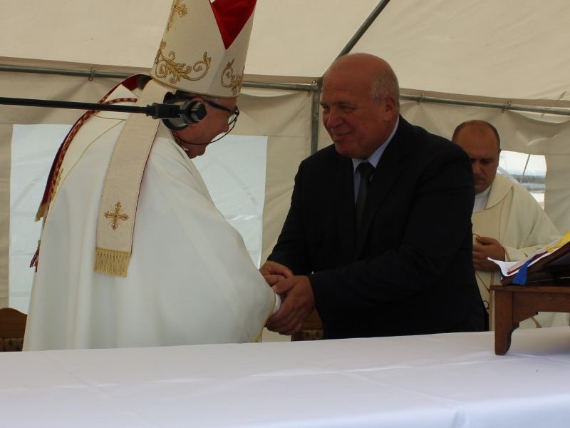 Prije početka svečane euharistije vjernicima i kardinalu obratio se gradonačelnik Lipika Vinko Kasana riječima dobrodošlice te darivajući kardinala Puljića prigodnim darovima rekavši “Posebno mi je zadovoljstvo i čast što vas mogu pozdraviti ispred svih časnih ljudi Grada Lipika i posebno Marinog Sela koji je kroz povijest preživio svega i dobroga i lošega ali nikada nije izgubio vjeru. Želim Vam se zahvaliti i da se ugodno osjećate u Marinom Selu, vaš današnji dolazak će nam svima osnažiti vjeru i kao ljudima i kao vjernicima.“