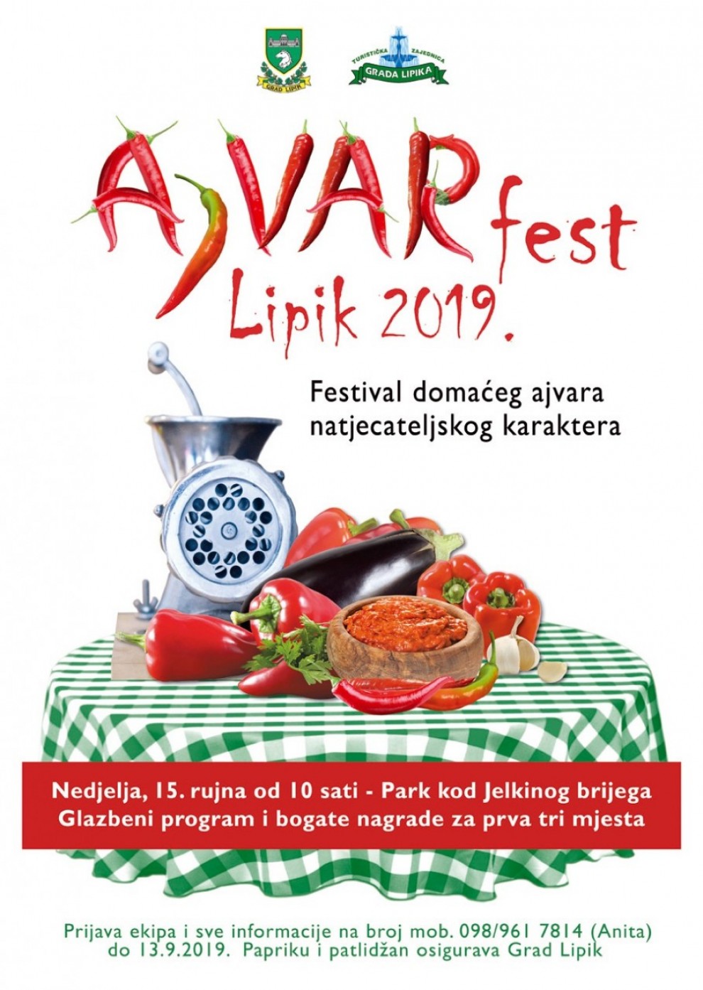 Četvrti Ajvarfest u Lipiku počinje u Nedjelju 15. rujna u 10 sati, a osim zamamnog mirisa koji će se taj dan širiti parkom i prizivati kojekakva sjećanja i emocije, posjetitelji će moći obići izložbeno prodajne štandove uz glazbeni program i popratne sadržaje.