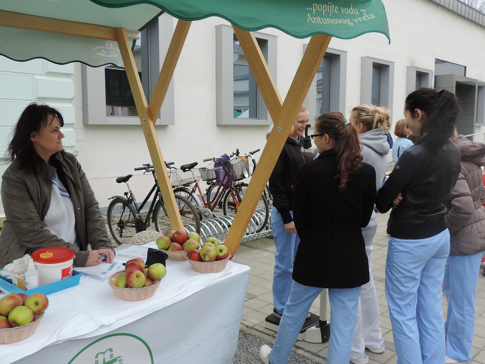 Na štandu Toplica Lipik ljubazne zdravstvene djelatnice izmjerit će vam težinu, visinu i vaše vitalne znakove te će vam udijeliti pokoji zdravstveni savjet uz jabuku ili čašu zdravlja prirodnog soka od jabuke.