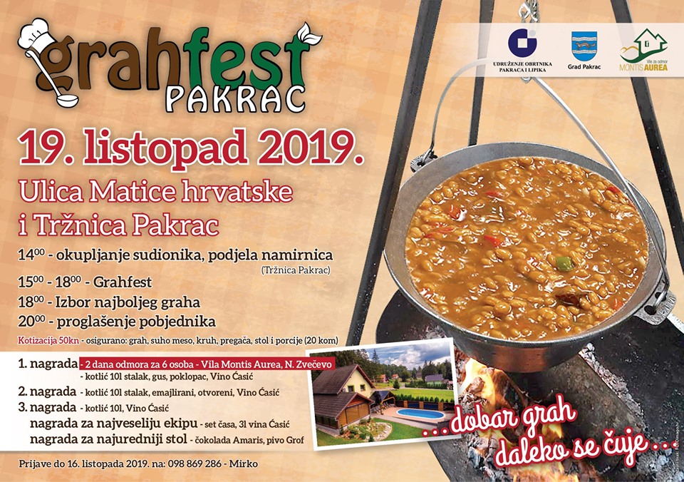 Sajam počinje u 10 sati degustacijom, prodajom i promocijom proizvoda na prigodnim štandovima, a svečano otvaranje sajma najavljeno je za 13 sati, dok u 15 sati započinje tradicionalni Grahfest - natjecanje u kuhanju graha kojeg organizira Udruženje obrtnika Pakraca i Lipika.