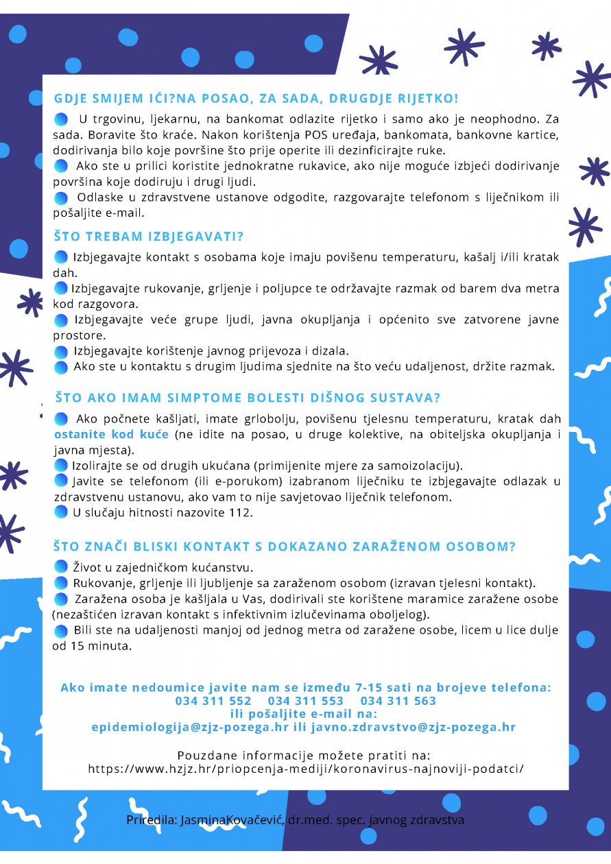 U skladu s prvim principom dr. Andrije Štampara „Važnije je obavještavanje naroda od zakona“ dr. Jasmina Kovačević, dr.med.spec. javnog zdravstva iz Hrvatskog zavoda za javno zdravstvo upućuje javnosti ključnu poruku koju u ovo vrijeme globalne pandemije treba primiti svaki građanin Republike Hrvatske: