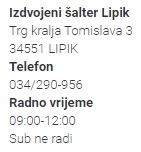 Naime, zbog situacije uzrokovane pojavom koronavirusa, privremeno je bio obustavljen rad Izdvojenog šaltera u Lipiku, međutim od ponedjeljka, 11. svibnja sve se vraća na staro. Tako će klijenti svoje transakcije moći obaviti svakog radnog dana (ponedjeljak – petak) u vremenu od 9 do 12 sati.