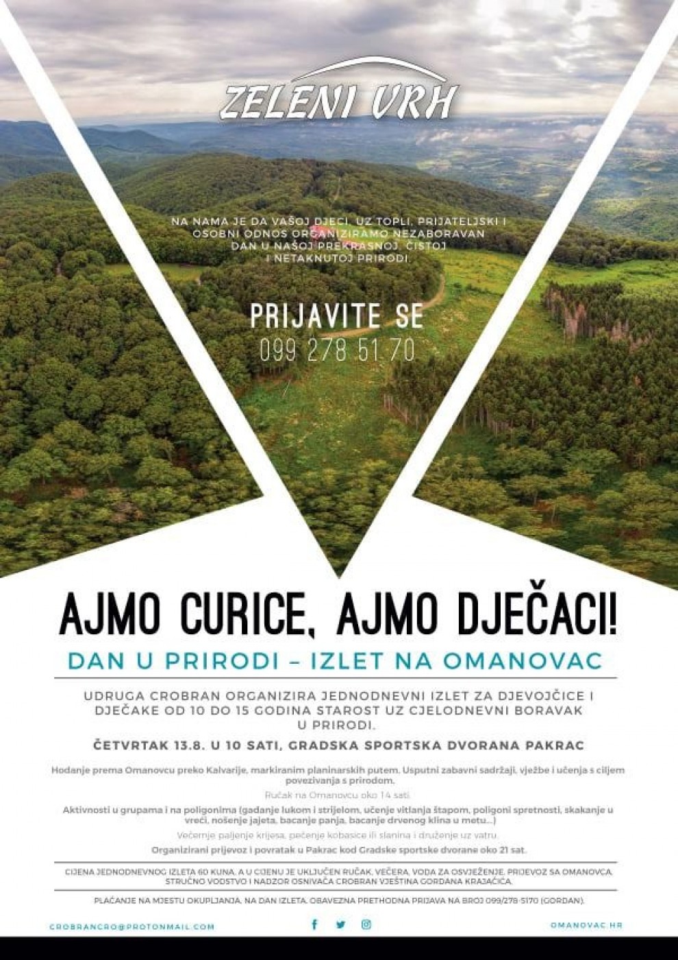 "A na nama je da vašoj djeci, uz topli, prijateljski i osobni odnos organiziramo nezaboravan dan u našoj prekrasnoj, čistoj i netaknutoj prirodi." poručuju iz Udruge Crobran.