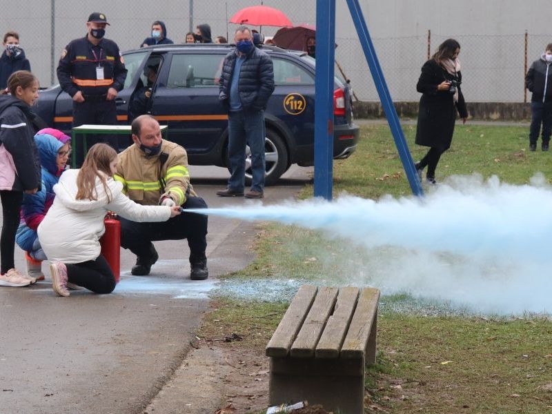 Nakon uspješno provedene evakuacijske vježbe na igralištu iza škole provedena je i demonstracija gašenja zapaljivih tekućina s više vrsta aparata za gašenje prahom u kojem su se uz osoblje Osnovne škole Lipik okušali i učenici stječući vrijedno iskustvo.