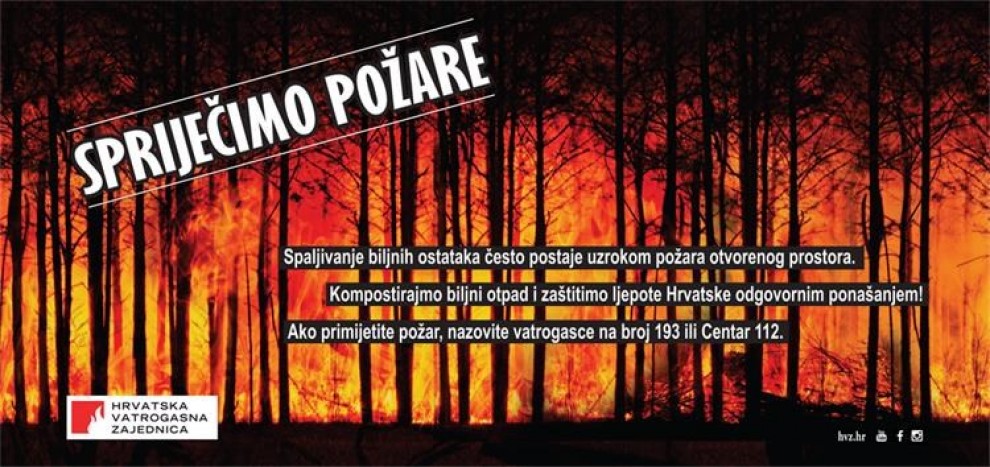 Nakon uočavanja požara odmah nazovite vatrogasce na broj 193, Centar 112 ili Policiju na 192.