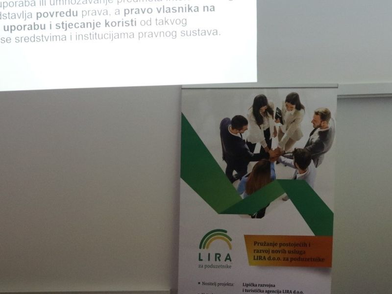 Informativna radionica s temom „Informiranje o zaštiti vlasništva, komercijalizaciji inovacija i certificiranju proizvoda i usluga“ provedena je u sklopu projekta „Pružanje postojećih i razvoj novih usluga LIRA d.o.o. za poduzetnike“. Ukupna vrijednost projekta je 593.928,38 kuna (sufinanciranje Europske unije iznosi 445.928,38 kuna). Projekt sufinancira Europska unija iz Europskog fonda za regionalni razvoj. Razdoblje trajanja projekta je 18 mjeseci (1.4.2020. – 31.10.2021.).