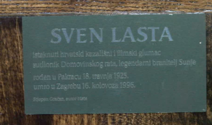 Postavljanjem biste Svenu Lasti u Hrvatskom domu želi se ostaviti trajni spomen na njega kao velikog umjetnika, glumca i pedagoga rođenog u Pakracu 18. travnja 1925. godine.