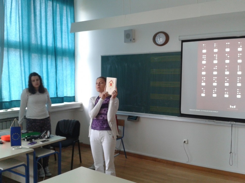 Predavanje učenicima održala je Andreja Veljača koja je i sama oslijepila u odrasloj dobi od posljedica šećerne bolesti, a na lijevo oko joj je preostalo 1% vida tako da osobe ili stvari u neposrednoj blizini vidi samo kao tamne siluete. Pročitati nešto, npr. račune za struju, vodu ili plin ne može bez pomoći osobe koja vidi. Kako bi učenici mogli bolje shvatiti svakodnevne aktivnosti slijepih osoba, neki od učenika su isprobali hodati s bijelim štapom s povezom preko očiju te naučiti kako biti dobar pratitelj slijepoj osobi, isprobali su čitanje teksta pisanog brajicom te sat i mobitel sa zvučnim funkcijama kakvim se koriste slijepe osobe. Također je učenicima ispričala svoju životnu priču i vlastito iskustvo, rekavši kako je nakon završetka fakulteta gubitkom vida, ponovo morala naučiti čitati, hodati, raditi na računalu, a to ne bi mogla bez pomoći svojih pratitelja.