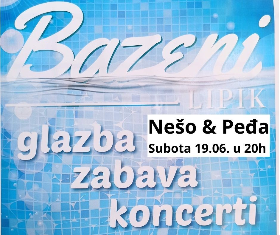 Ovim se putem pozivaju građani na noćno kupanje i 1. koncert ljetne sezone 2021. na Bazenima Lipik u predstojeću subotu, 19. lipnja. Od 20 sati će nastupati legendarni duo "Nešo i Peđa".