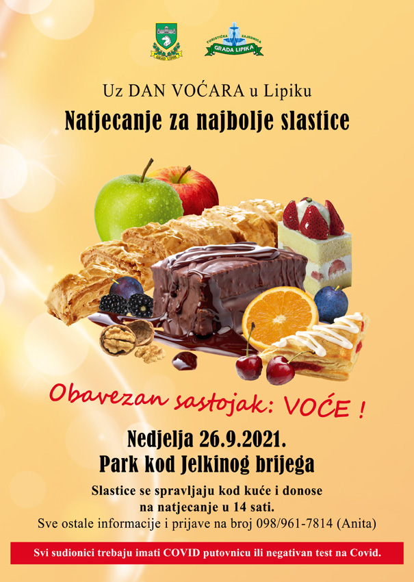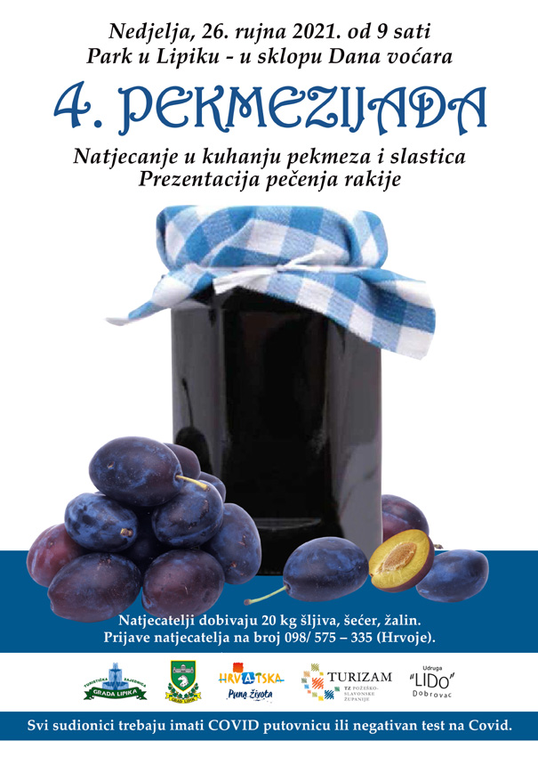 S mirisima tople jeseni, Ajvar festa koji se održao 12. rujna i Dana nacionalnih manjina koji je se održan protekle subote, pripreme su u tijeku i za naaaajslađe manifestacije „Dan voćara“, „Pekmezijadu“ te „Natjecanje u spravljanju slastica“ koji će se održati 26. rujna u nedjelju od 9 sati na tradicionalnom mjestu održavanja manifestacija, parku u Lipiku.