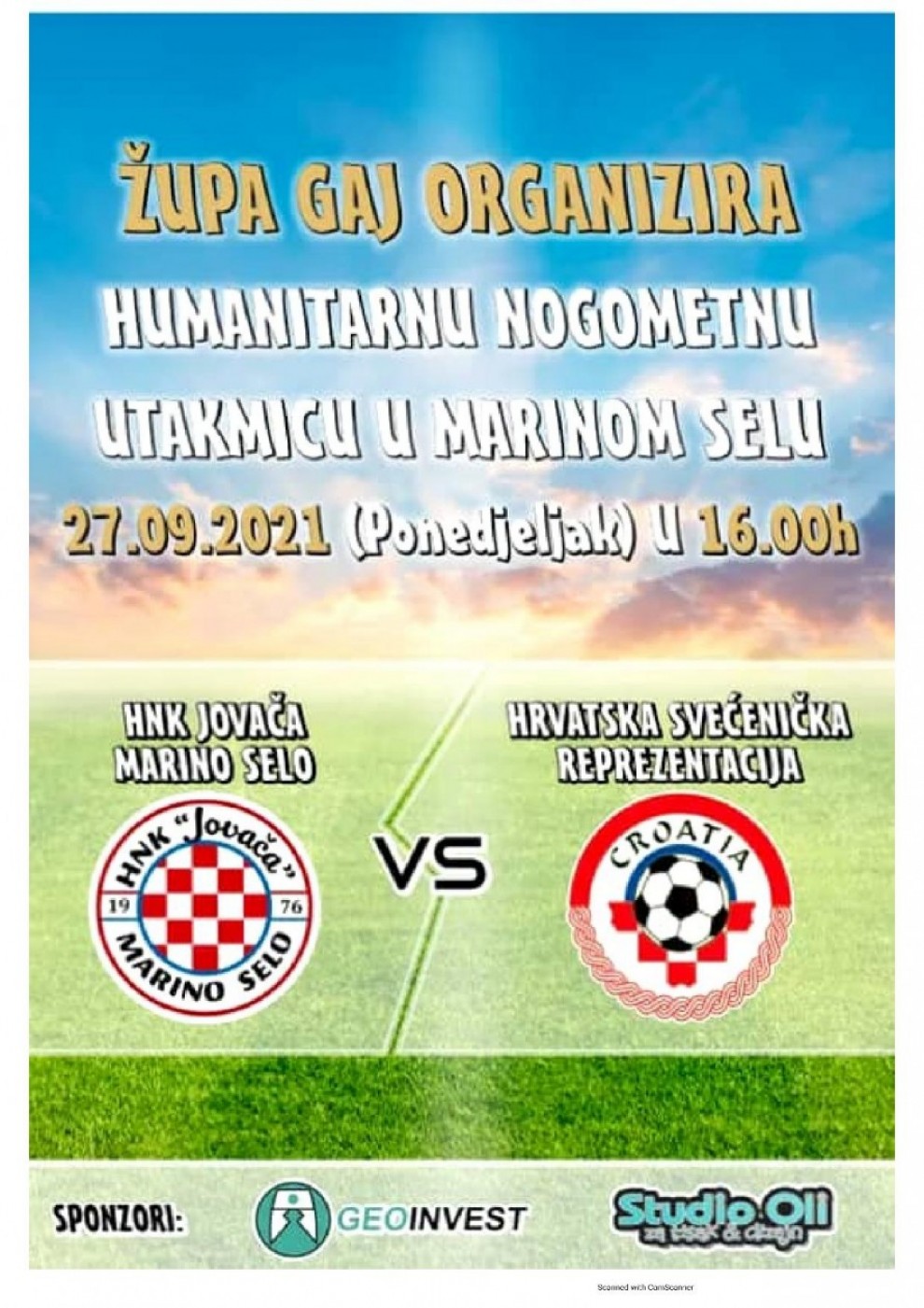 U organizaciji Župe Gaj na nogometnom igralištu u Marinom Selu idući ponedjeljak, 27. rujna s početkom u 16 sati održat će se humanitarna utakmica između HNK "Jovača" i hrvatske svećeničke reprezentacije. Kako smo doznali od Miroslava Miokovića, predsjednika nogometnog kluba "Jovača", utakmicu je dogovorio vlč. Augustin Tašić, župnik Župe sv. Katarine u Gaju te Župe Presvetog Srca Isusova u Antunovcu, a financijska sredstva koja se prikupe bit će namijenjena za obnovu župne crkve svete Katarine u Gaju.