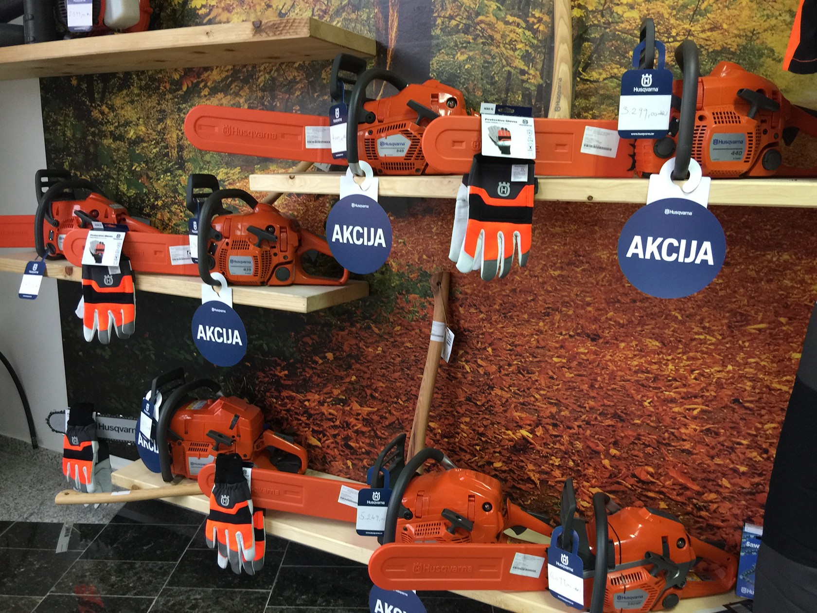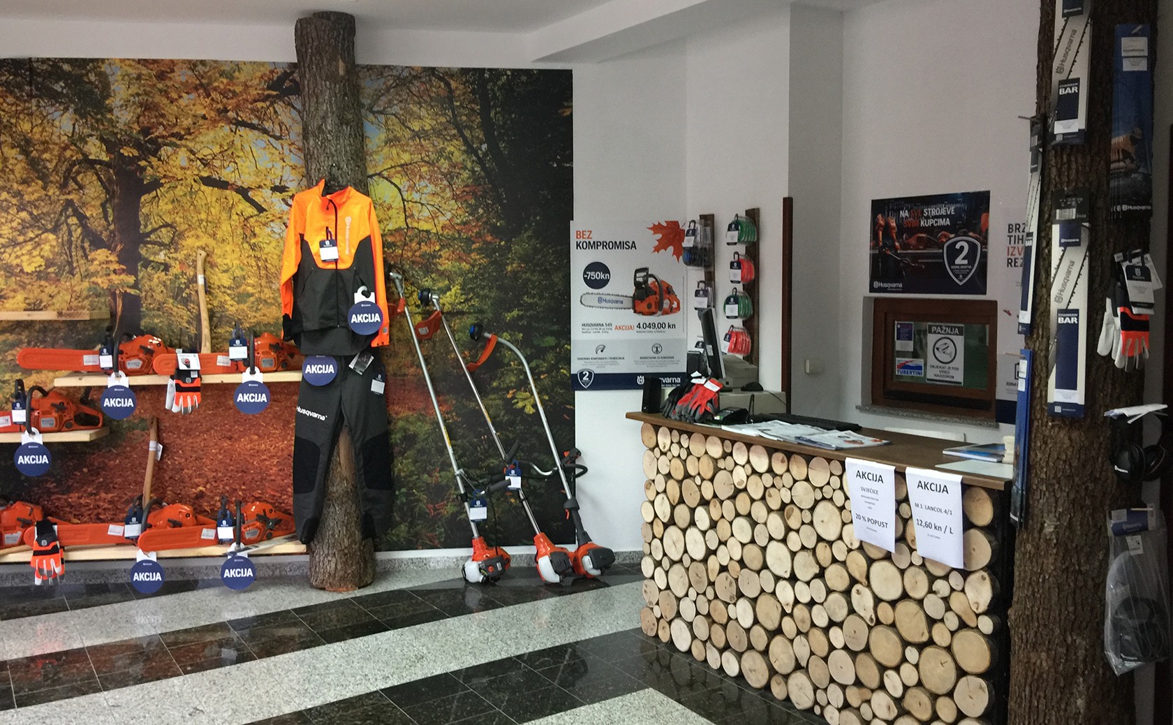 Na akciji je i zaština oprema, hlače, rukavice te čizme sa zaštitom od prorezivanja, a u ponudi trgovine nalazi se i razni potrošni materijal i dijelovi širokog izbora za sve motorke. Primjerice mogu se kupiti lanci za motorne pile čak četiri različita proizvođača, a cijena se kreće od 3,2 kn pa do 11 kn po zubu, dok se recimo ulje lancol različitih proizvođača može nabaviti od 12kn po litri.