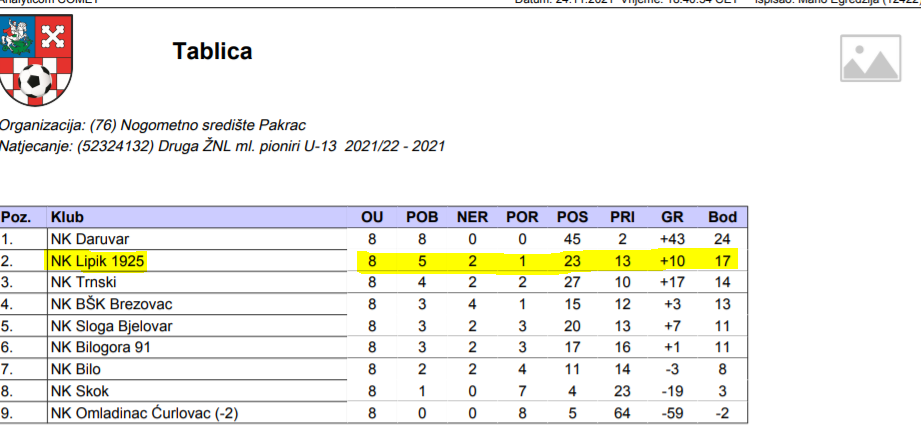 U nastavku donosimo osvrt na polusezonu mlađih kategorija Nogometnog kluba Lipik 1925.