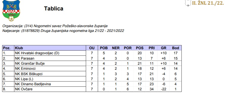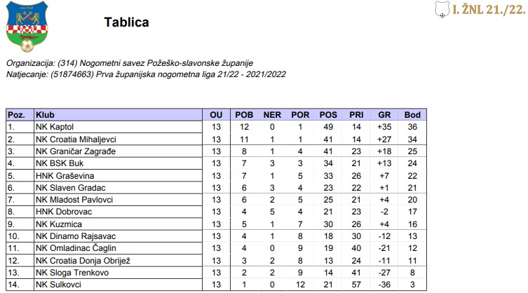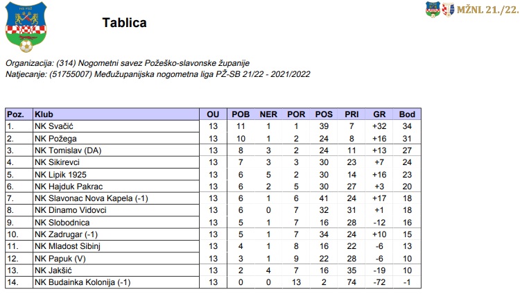 U ovoj ligi igra i pakrački Hajduk koji se s 20 bodova nalazi na 6. mjestu prvenstvene tablice. Hajduk će sutra, 12. ožujka biti domaćin NK Slobodnica koja trenutno zauzima 9. mjesto sa 16 bodova.