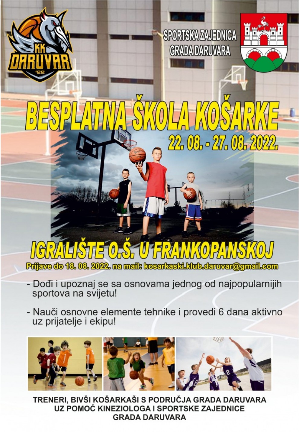 U organizaciji Košarkaškog kluba Daruvar 2022 i uz pomoć Sportske zajednice grada Daruvara pokreće se i ove godine BESPLATNA ŠKOLA KOŠARKE !!