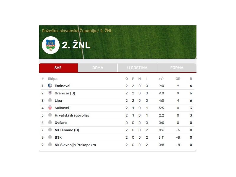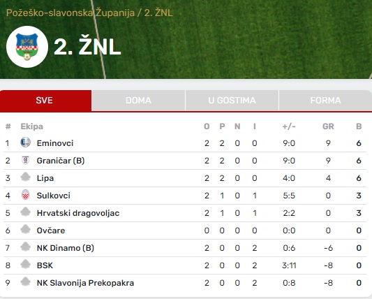 NK Slavonija iz Prekopakre koja se ponovno aktivirala unutar 2. ŽNL poražena je 11. rujna na domaćem terenu s rezultatom 5:0 od gostujućih Eminovaca. Na vlastitom je terenu protekle nedjelje poražen i Dinamo iz Badljevine s 2:0 od gostujuće Lipe.