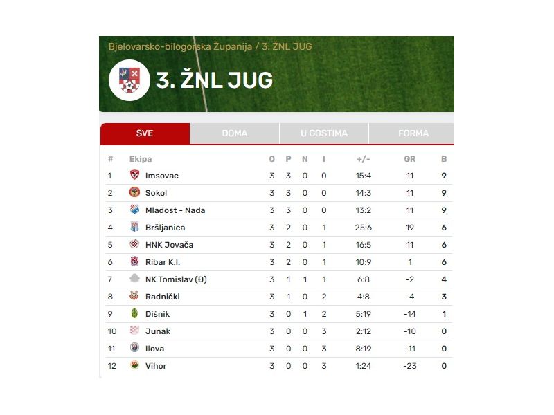 Dobrovac ima 4 boda i trenutno se nalazi na 8. mjestu prvenstvene tablice, a Croatia je na 10. mjestu i ima 1 bod.
