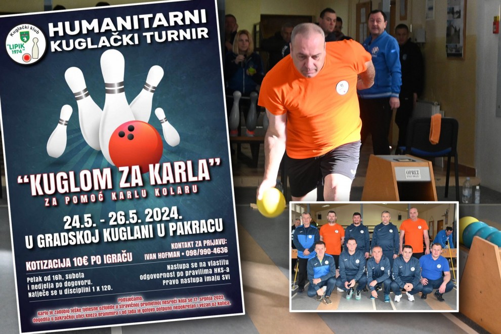 U organizaciji Kuglačkog kluba Lipik 1974 i u suradnji sa Sportskom zajednicom Grada Pakraca, od 24. do 26. svibnja (petak – nedjelja) u gradskoj kuglani u Pakracu bit će održan humanitarni kuglački turnir „Kuglom za Karla“ s ciljem prikupljanja sredstava za pomoć u liječenju Karlu Kolaru iz Pakraca.
